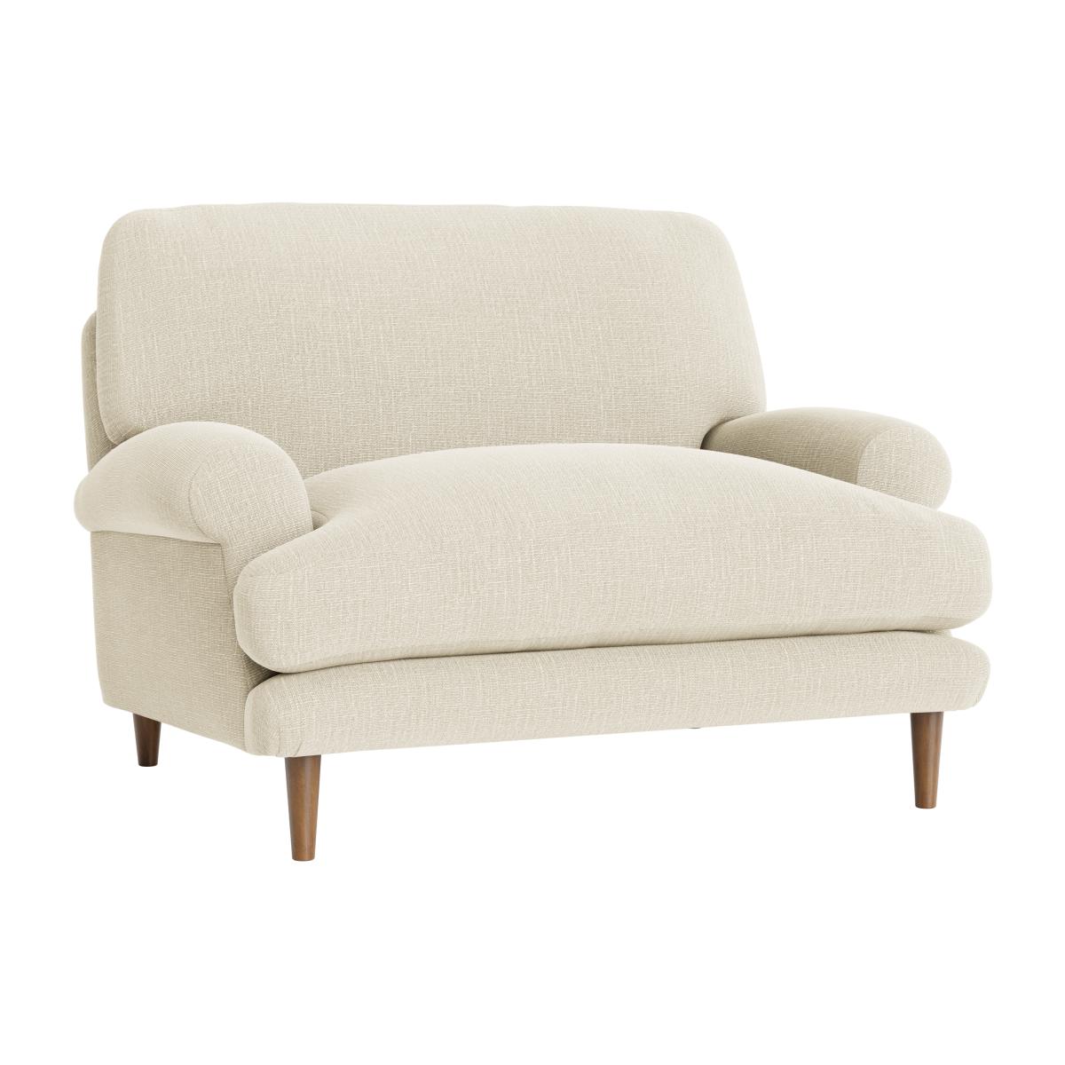 Squishy. Good-looking. And with mid-century dark wood legs. Three reasons why our new Dawdler love seat is a bit of alright.