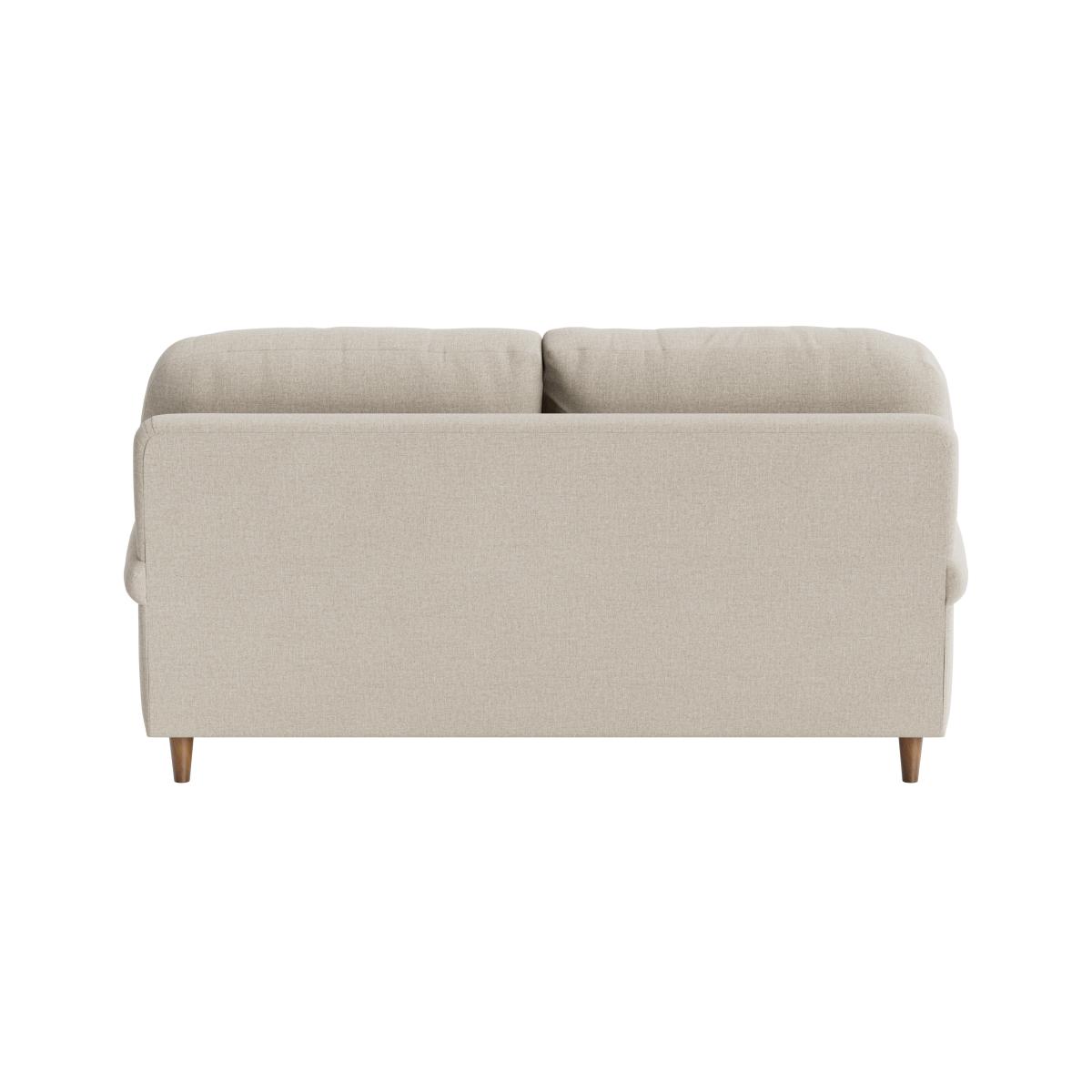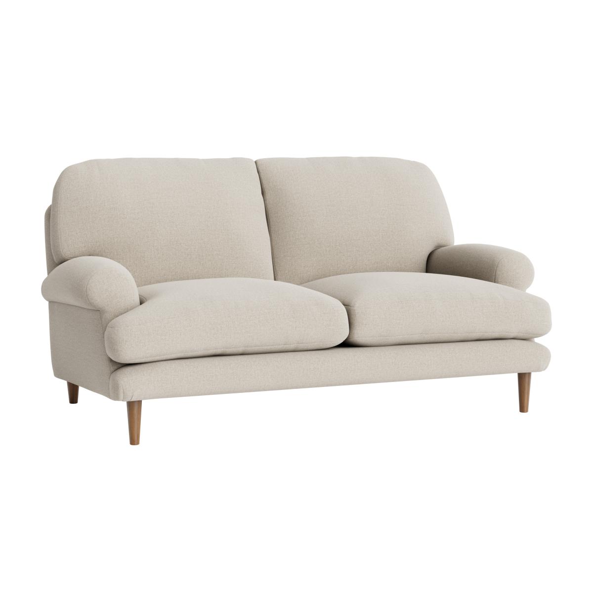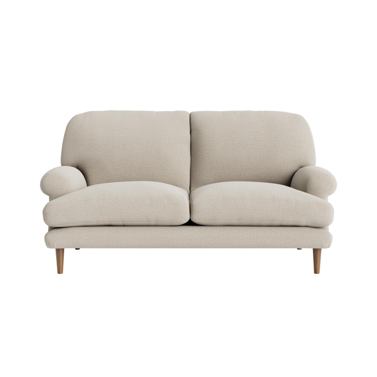 I love this little sofa for its versatile and timeless appeal. It works well in both contemporary and traditional interiors, offering a relaxed yet refined look. The neutral fabric makes it easy to accessorise with colourful cushions or throws, allowing flexibility in styling. Practical tips include placing it against a statement wallpapered wall to add visual interest, or pairing it with wooden or metal accents for a more curated aesthetic. Its modest size makes it perfect for smaller living rooms or as a cosy seating option in larger spaces, and elevating it with a statement rug or side table can really boost the overall decor.