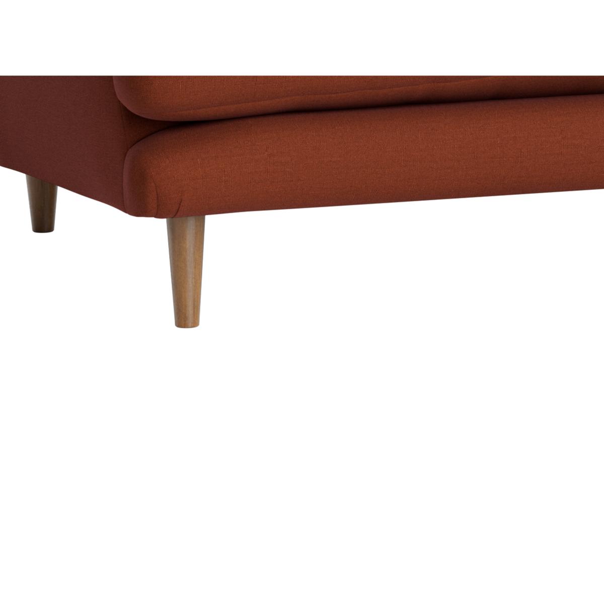 I love the dawdler sofa for its relaxed yet sophisticated silhouette, making it a versatile piece that suits both contemporary and vintage-inspired interiors. Its warm terracotta hue adds richness and can act as a statement in neutral schemes, or seamlessly complement earthy and nature-inspired colours. Practical styling tips include pairing it with textured cushions and throws to enhance its cosy appeal, or layering it with a range of different fabric textures for visual interest. It works well in living rooms aiming for a comfortable, lived-in vibe, especially with mid-century or eclectic interiors, but can also function as a standout piece in more minimalist spaces when styled thoughtfully.