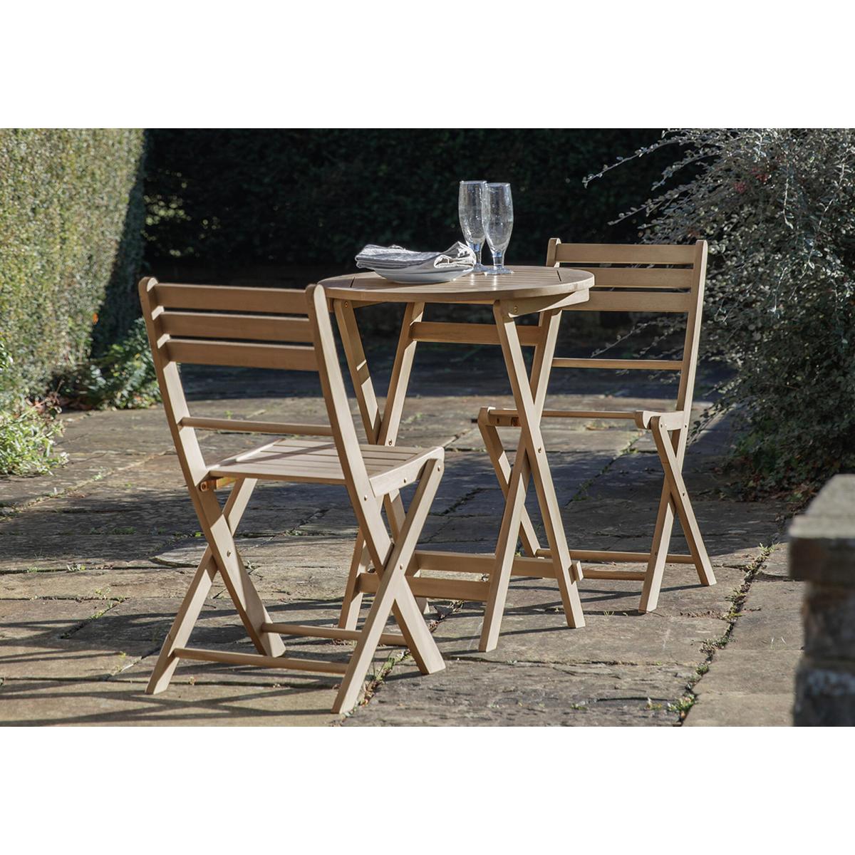 I love this bistro set for its simple, natural look that works beautifully in a variety of outdoor spaces. Its neutral wood tone makes it versatile enough to complement both modern and rustic gardens or patio areas. It’s also lightweight and easy to move around, making it perfect for creating intimate dining zones or cosy corner setups. In styling, try pairing it with some colourful cushions or a patterned outdoor rug to add personality, or surround it with lush greenery for a relaxed, alfresco vibe. The clean lines make it equally at home paired with contemporary planters or traditional garden accessories, giving you lots of flexibility to create a charming, inviting outdoor retreat.