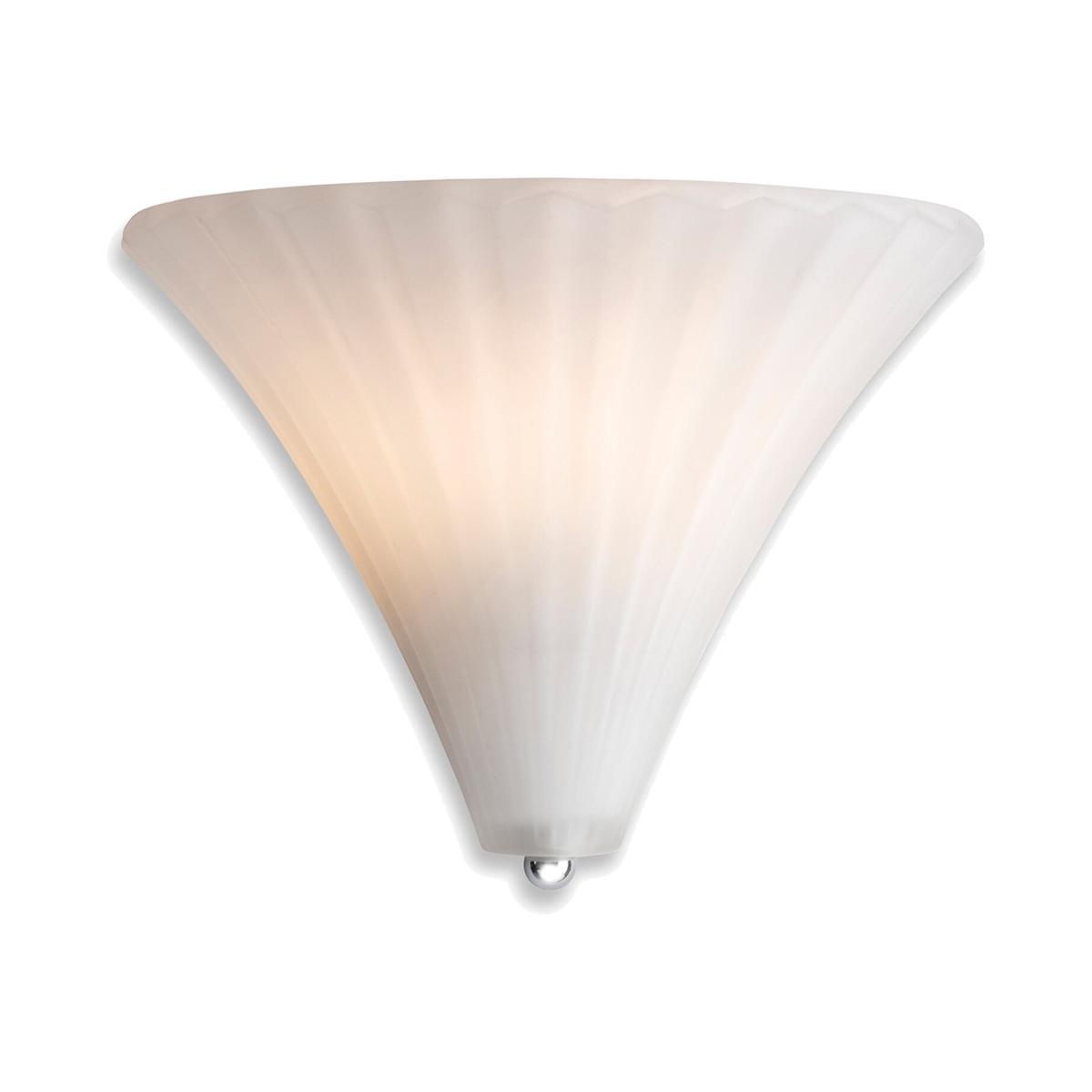 Lovely fluting adds interest to the Dawn Uplight White Opal Glass Wall Fixture. Perfect for a living space to wash a wall with light this fixture would be equally beautiful in a hallway for navigational help. The white opal glass shade diffuses the light for a soft touch.