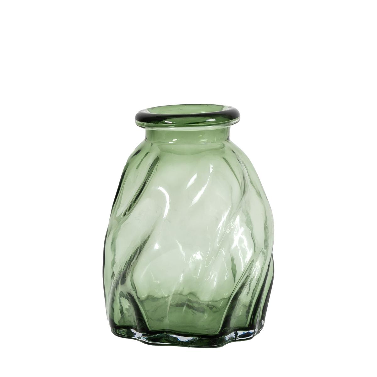 * Beautiful green glass* Organic undulating form* Modern* Suitable for water In beautiful green glass, the organic undulating form of this vase catches the light perfectly, creating shadows and shine wherever its placed. A smaller version is also available, and the pair look great when placed together.