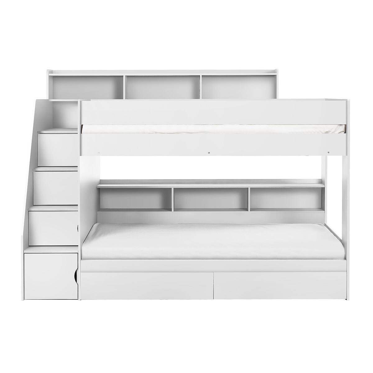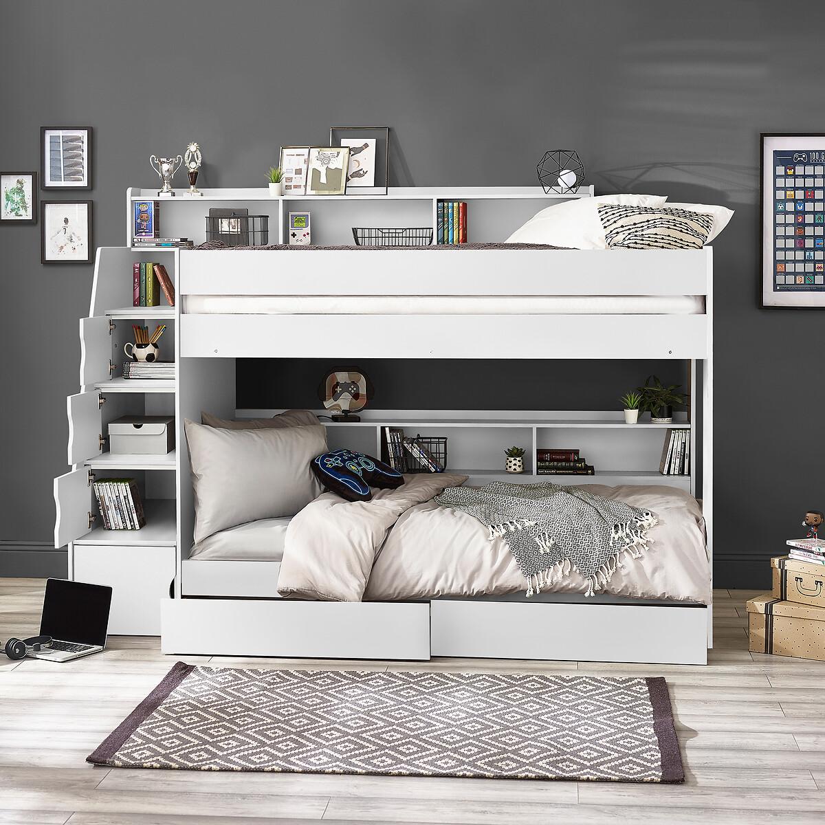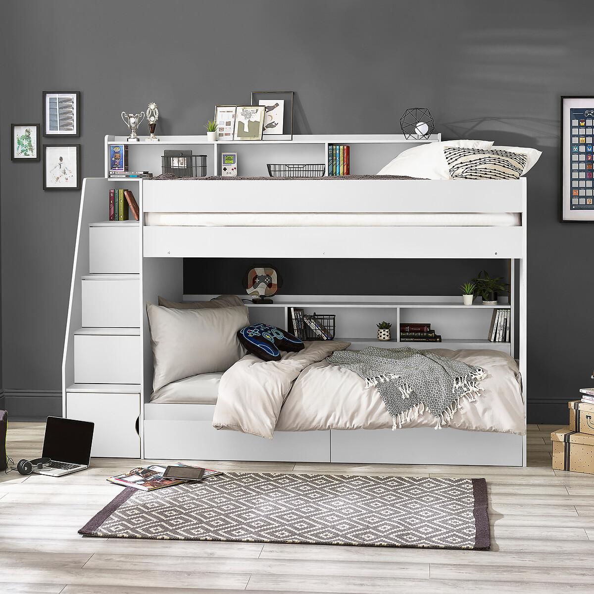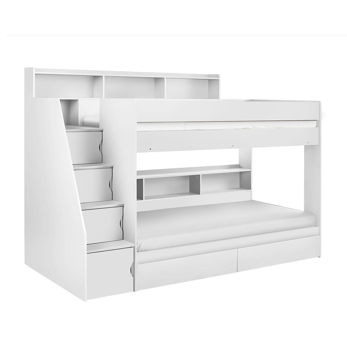 The Dawson Staircase Bunk is a lacquered bunk bed, created with innovative and functional construction. With spacious storage in the stairs, bottom bunk, top bunk and additional storage drawers at the bottom - you'll never be short on space! Completed with an easily wipeable finish, the Dawson keeps your child's room looking clean and fresh with minimal upkeep, and will suit any decor style. Product details• Innovative and functional construction.• Ample storage for books, toys and games - keeping mess minimal!• Large stairs which are safe for your child to manouver.• Features hidden cupboards in steps• Easy-to-clean finish which is perfect for any decorative style.• Assembly required• Fixings included• Max weight capacity - 12 stone• Compatible with Standard UK single 90 x 190 cm mattresses• Mattress not included• Maximum mattress height - 17cm. To minimise the danger of falling from the top bunk, we recommend that the top of the mattress should always be at least 16cm below the top of the lowest part of the guardrail. • 12 month product guarantee. Composition - 100% Particleboard Overall Dimensions 237.5 cm x 116.5 cm x 171 cm , Weight - 181.5 KGPackage Dimensions: Parcel 1 Packaged Dimensions - 201 cm x 48 cm x 13 cm, Weight 38 KGParcel 2 Packaged Dimensions - 201 cm x 35 cm x 21 cm, Weight 42 KGParcel 3 Packaged Dimensions - 151 cm x 102.5 cm x 9 cm, Weight 38 KGParcel 4 Packaged Dimensions - 177 cm x 45.5 cm x 17 cmcm, Weight 41 KGPlease note: this product cannot be be delivered to all Offshore Islands Northern Ireland or Republic of Ireland. This product will be dispatched by one of our trusted suppliers. You’ll be contacted by their selected courier about your delivery.