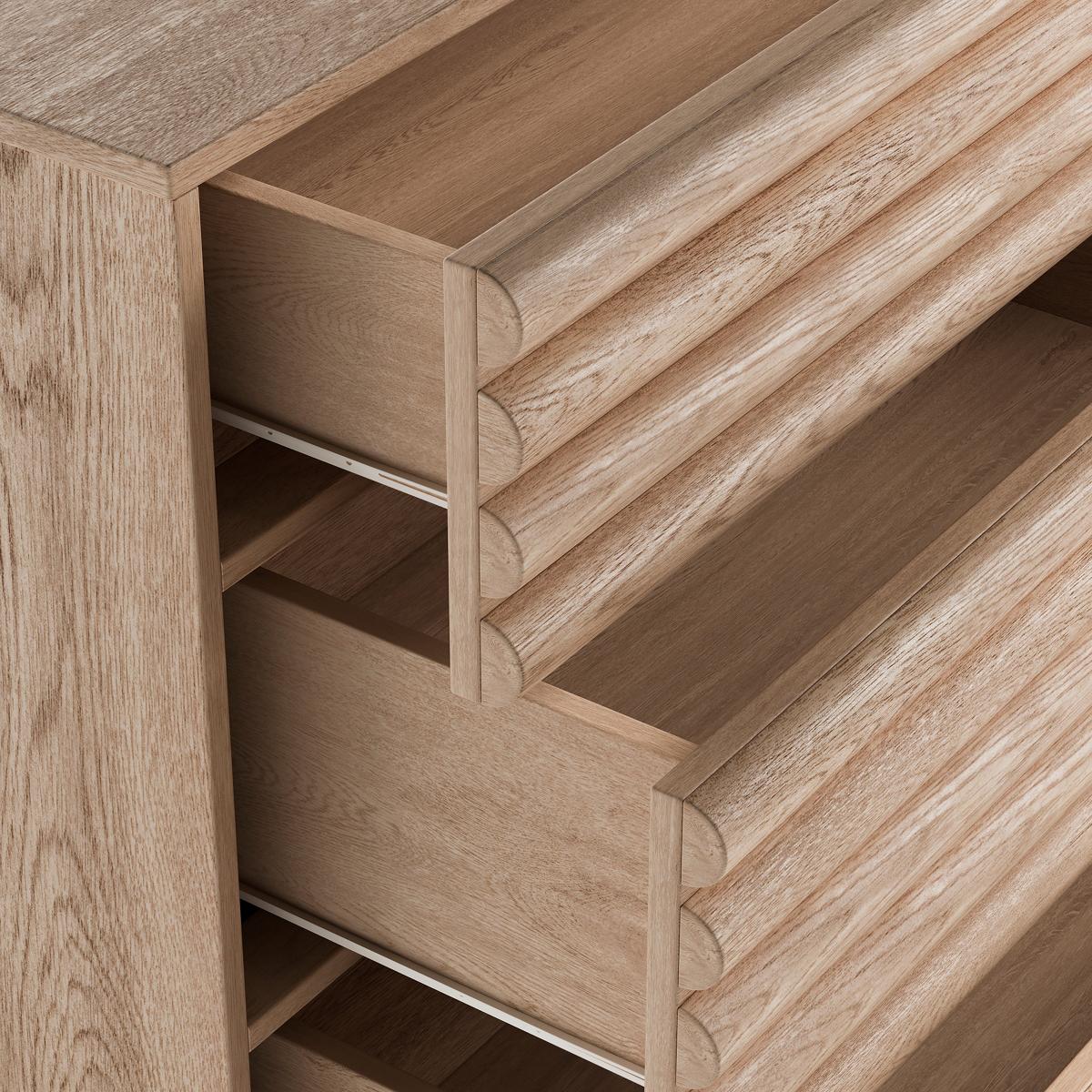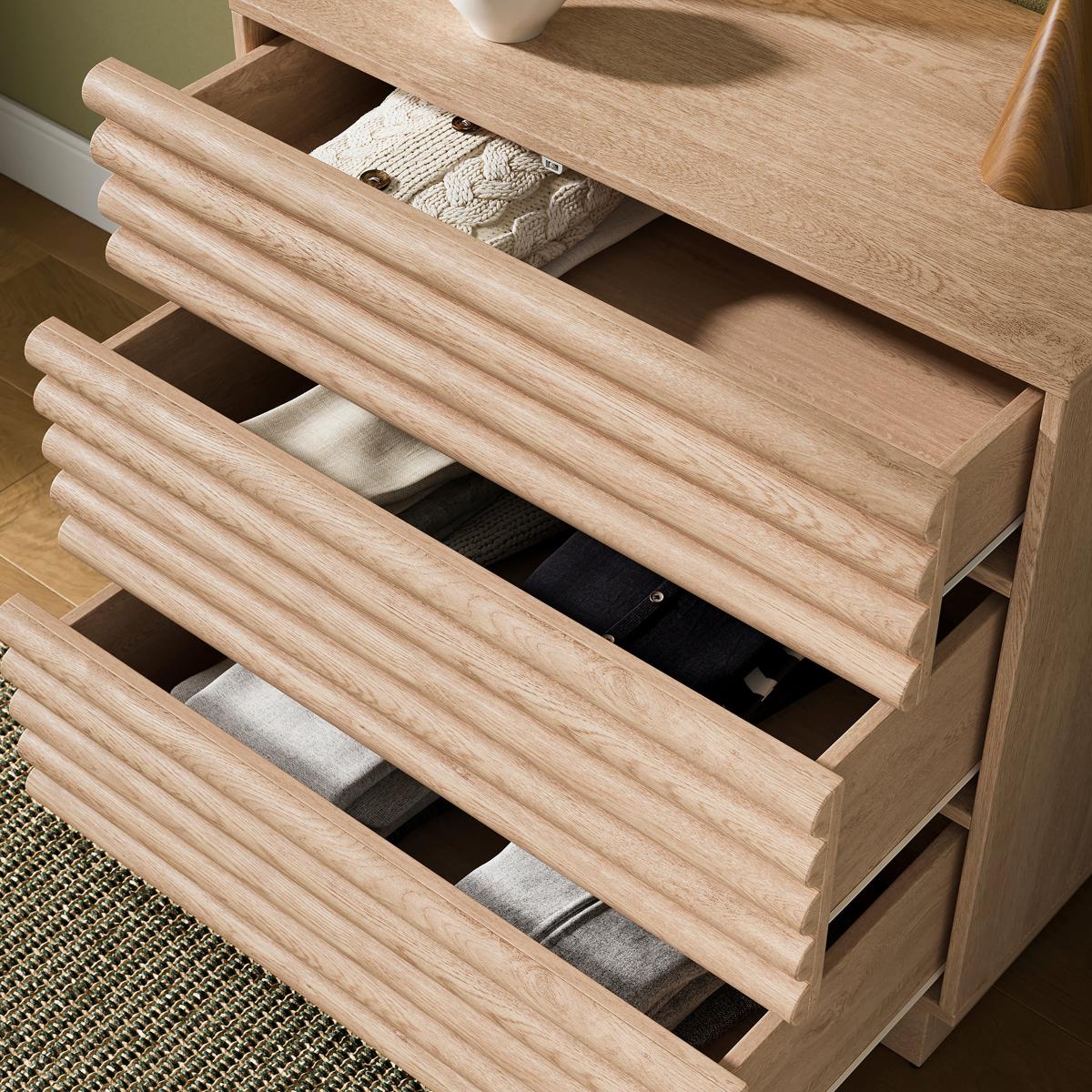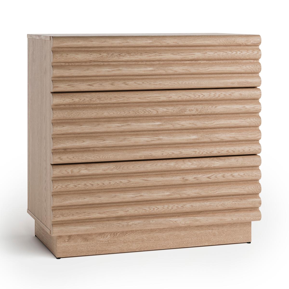 I’m a fan of the Dax chest for its lightly distressed oak and ribbed drawer fronts - it brings texture without overwhelming a space. Its compact three-drawer layout makes it equally at home as a hallway catch-all, bedroom bedside or living-room storage unit. Styling-wise, pair it with a round mirror or sculptural lamp, plus a couple of vases in differing heights (think glass or muted ceramics) and a touch of greenery or dried grasses. It works well in Scandi, coastal or contemporary boho schemes - just keep accessories minimal and tuck a small basket underneath to boost practicality.