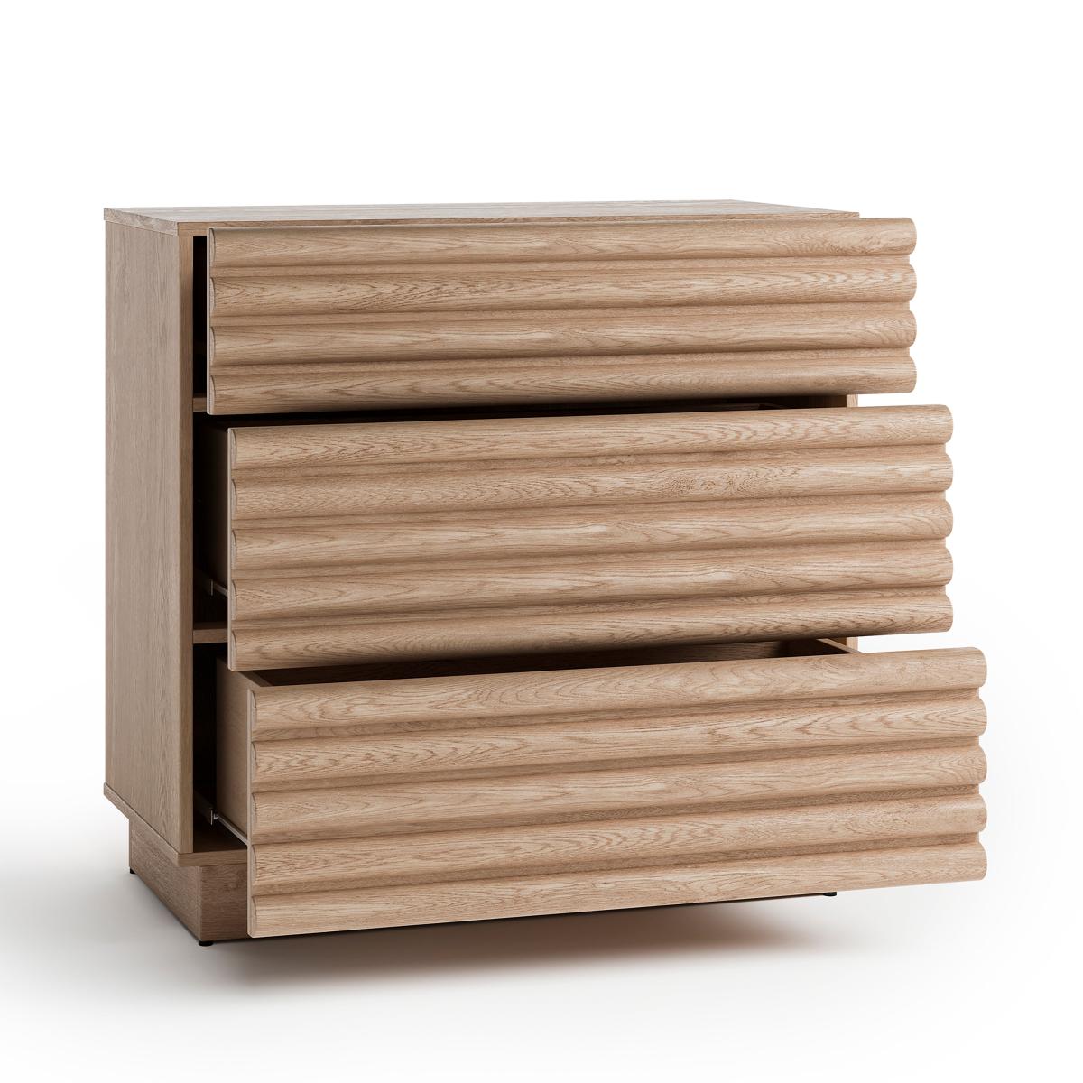 Dunelm Exclusive - Designed and Developed by Dunelm* Wooden Chest of Drawers* Metal Runners* 3 Large Drawers With its sleek silhouette and rich oak finish, this chest oozes modern elegance while providing essential storage space for your bedroom. The three spacious drawers offer ample room to organise clothes and belongings, ensuring a clutter-free environment. Designed for convenience, the Dax Chest features undermount metal runners for smooth and silent drawer operation, adding a touch of luxury to your daily routine.