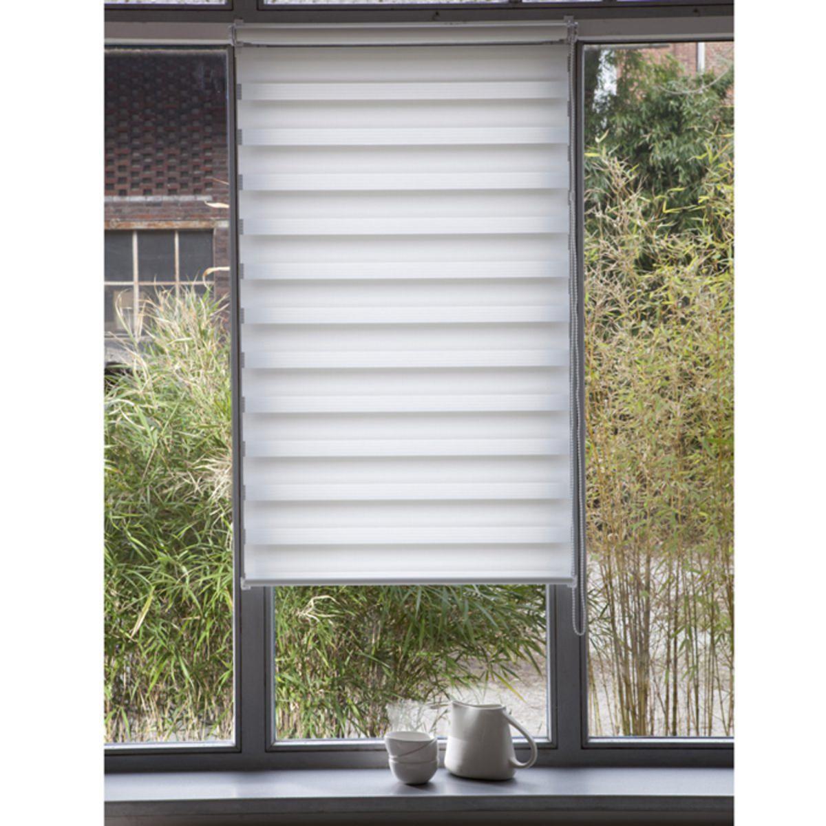 Day/night light-filtering roller blind with Easy Concept fitting system (narrow windows). This blind enables you to easily regulate the intensity of light in your room, from partially open to filtered.