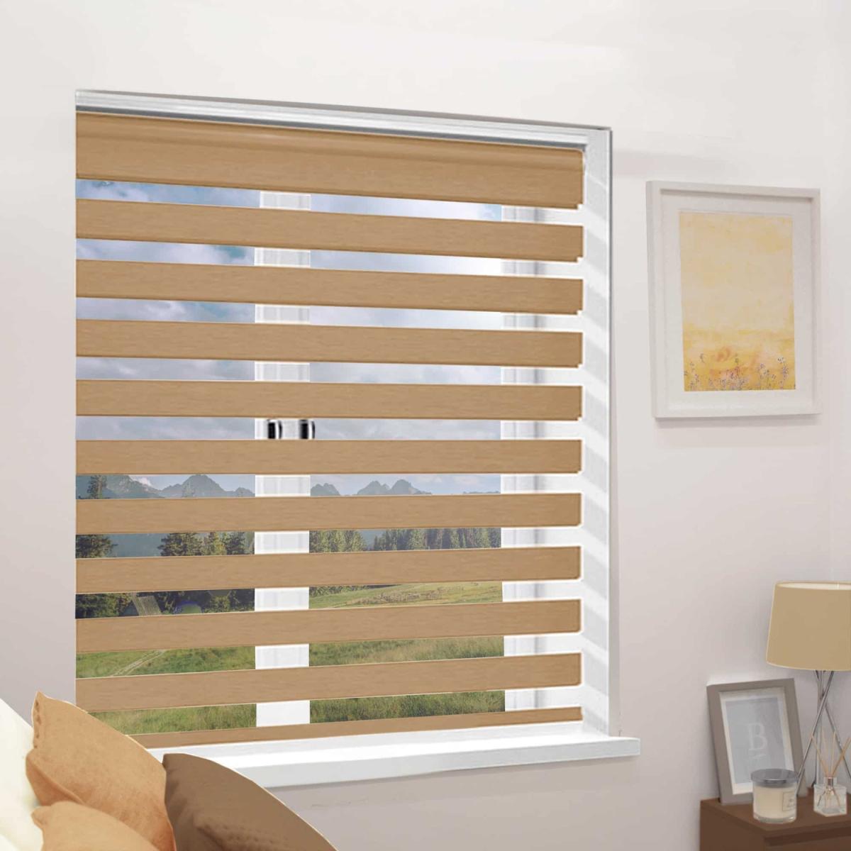 Introducing our stylish and functional day-night roller blinds, the perfect solution for light control and privacy in any room of your home or office. Our day-night roller blinds are designed to offer the best of both worlds, combining the benefits of a classic roller blind with the added versatility of a double-layered fabric construction. Featuring two layers of fabric, our day-night roller blinds provide privacy and light control while allowing natural light to filter through. The first layer is a translucent or sheer fabric that diffuses light and helps to reduce glare, while the second layer is an opaque fabric that provides complete privacy when closed. Our day-night roller blinds are perfect for bedrooms, living rooms, and any other room where you want to enjoy natural light during the day and complete privacy at night. With our easy-to-use controls, you can adjust the blinds to your desired level of light and privacy, creating the perfect ambiance for any occasion. Made from high-quality materials, our day-night roller blinds are durable and easy to maintain. They are available in a wide range of colours and patterns to complement any decor style, from classic to contemporary. Whether you are looking to add a touch of elegance to your home or office, our day-night roller blinds are the perfect choice. Our day-night roller blinds are also energy-efficient, helping to reduce your energy bills by insulating your windows and blocking out harmful UV rays. They are easy to install and come with a full warranty, ensuring your complete satisfaction with your purchase. In summary, our day-night roller blinds offer the perfect combination of style, functionality, and energy efficiency. They are versatile, easy to use, and designed to enhance the look and feel of any room. Try them today and experience the difference!