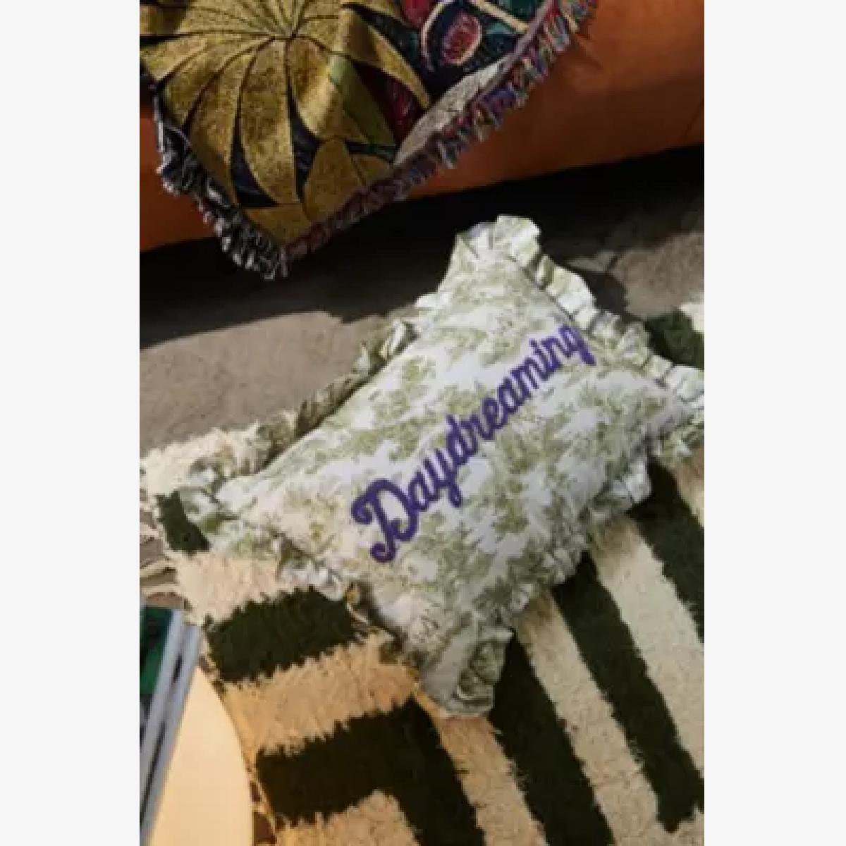 I love the Daydreaming Ruffle Cushion for adding a touch of softness and texture to a variety of interiors. Its gentle light green hue makes it versatile for both neutral and pastel schemes, while the ruffled detailing adds subtle visual interest without overpowering the space. It works particularly well in relaxed, cosy living rooms or bedrooms with boho or Scandinavian styles. For styling tips, try layering it with other cushions in similar shades or contrasting textures to create a curated, inviting look. It’s equally suited for draping over a sofa or armchair to introduce a playful yet sophisticated detail.