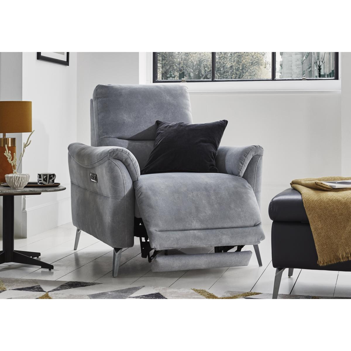 Welcome to the future of comfort. The Daytona range of tech sofas is full of modern features, including inbuilt Bluetooth speakers and USB charging points that take your relaxation to the next level. The smooth power reclining action and pocket sprung seats ensure your complete comfort sit after sit, while the gently curved contemporary silhouette blends beautifully with modern interiors. Whether you’re playing your perfect Sunday playlist or kicking back with a movie on a Friday, the Daytona promises an exceptional experience every time. Exclusive to Furniture Village. It’s all about the comfort with the Daytona fabric power recliner chair. With pocket sprung seats and a super smooth power recliner, you won’t want to leave the house. Why you'll love it Get ready to relax with this fabric power recliner chair. Stylish modern silhouette with gentle curves. Find the perfect position with smooth power reclining. Beautifully soft fabric upholstery. Take your pick from a choice of gorgeous colours. Also available as a tech chair with Bluetooth speakers. Non-reclining option available. A Furniture Village exclusive. This fabric power recliner chair is part of the Daytona range. What you need to know Pocket sprung seat. Fibre-wrapped foam seat cushioning. Fibre-filled back cushion. Please allow time for new recliners to ease. Minor gaps are necessary to ensure ease of recliner motion and may be exaggerated depending on floor type. Some fabrics can show wear on areas of more use or in direct sunlight. Clean regularly using a soft brush or vacuum with the curtain attachment. Deal with any spills promptly. Professional cleaning advised for oil- and grease-based stains. Please read our upholstery care guide for more advice.
