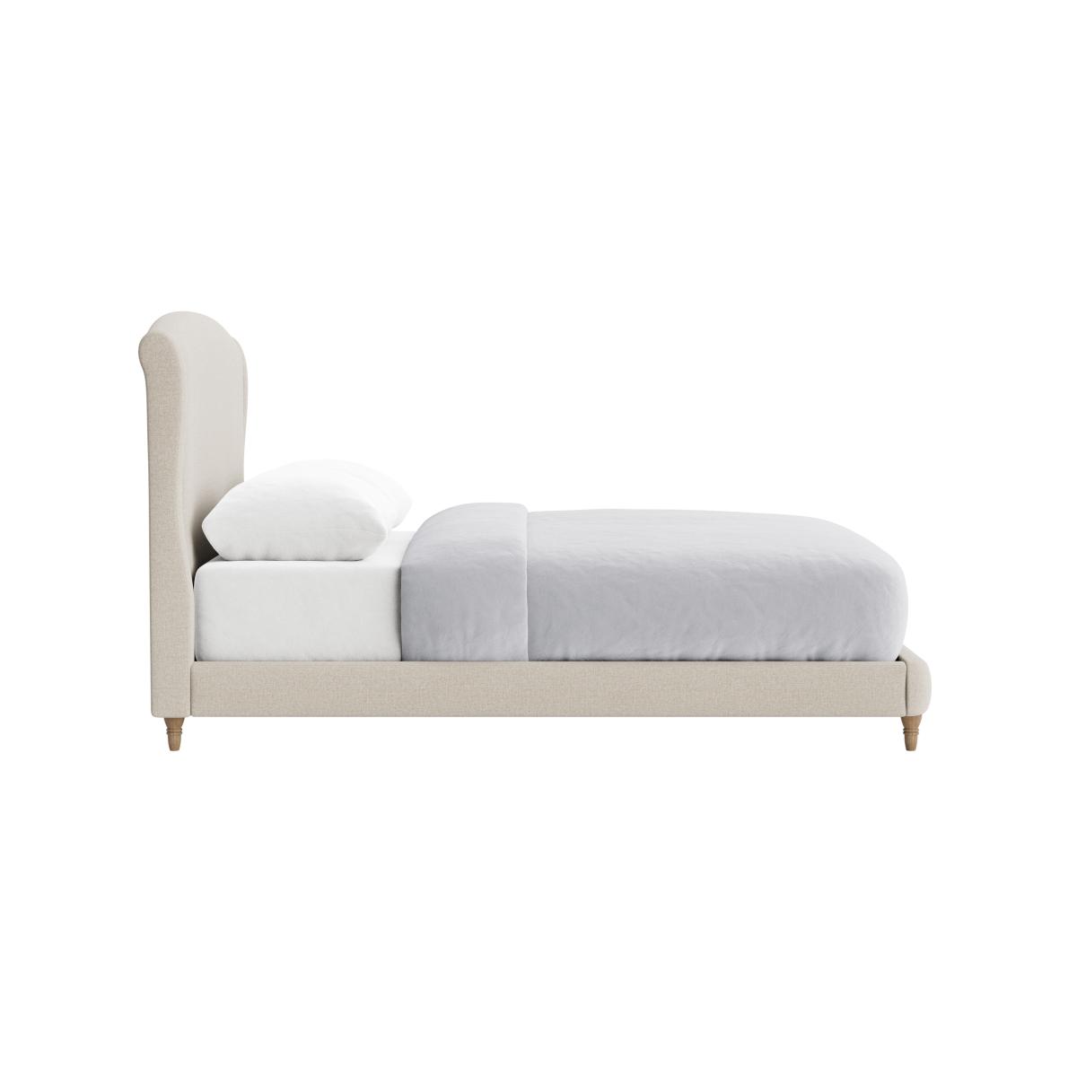 I love this bed frame for its clean, contemporary lines and versatile silhouette, making it a great statement piece in both modern and classic interiors. Its neutral tone allows it to blend seamlessly with various colour schemes and styles, from soft pastels to rich textures. Styling tip: pair the bed with layered bedding and textured cushions to add personality and comfort. It works particularly well in minimalist bedrooms, but can also be dressed up with luxe throws or metallic accents for a more opulent look. Keep the surrounding decor simple to let the shape and craftsmanship of the frame stand out, creating an inviting yet refined space.