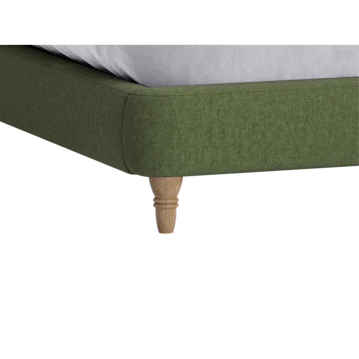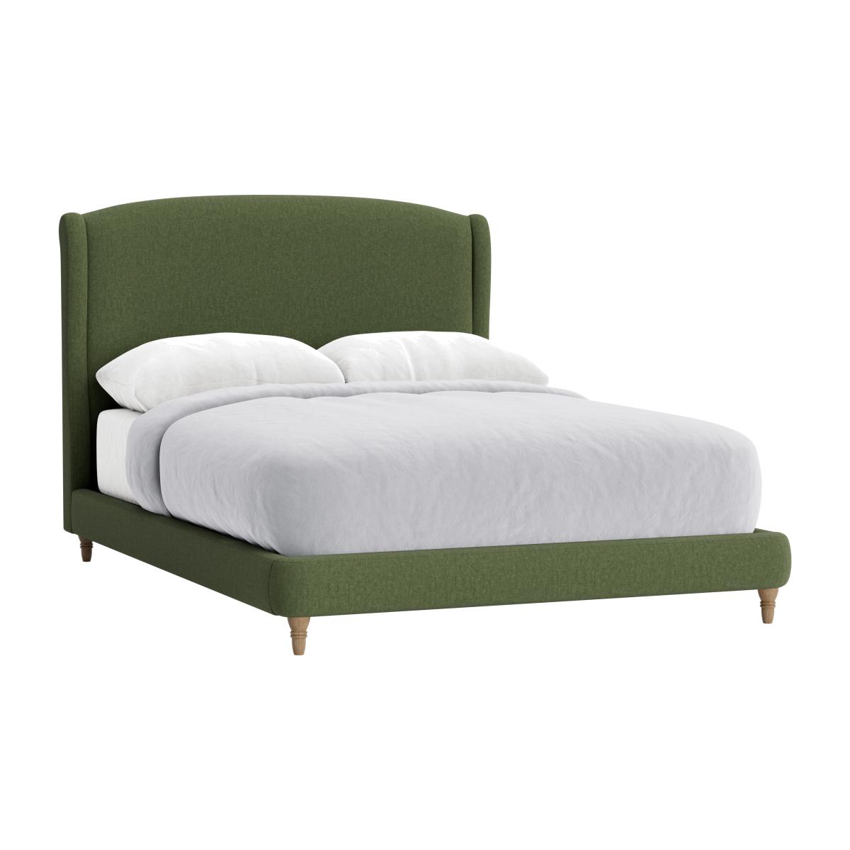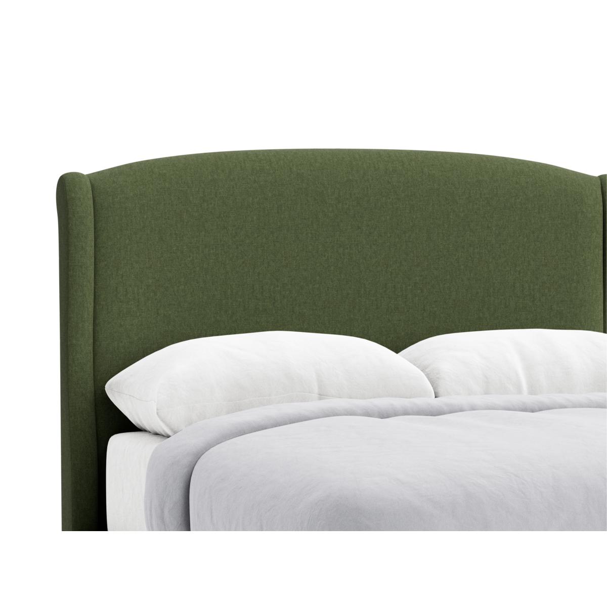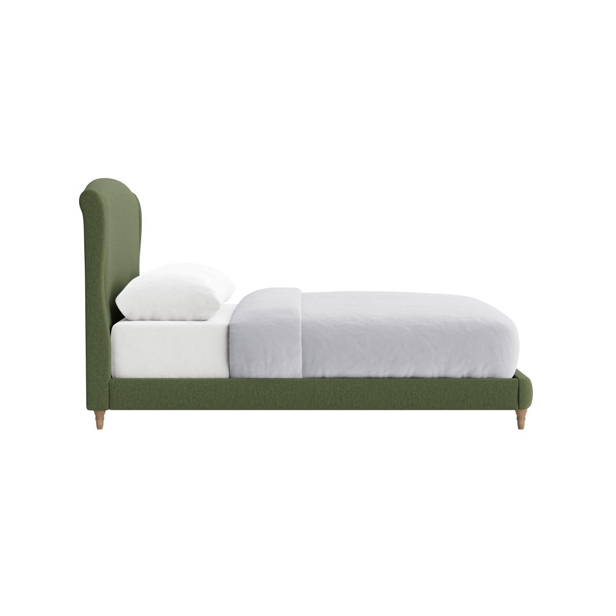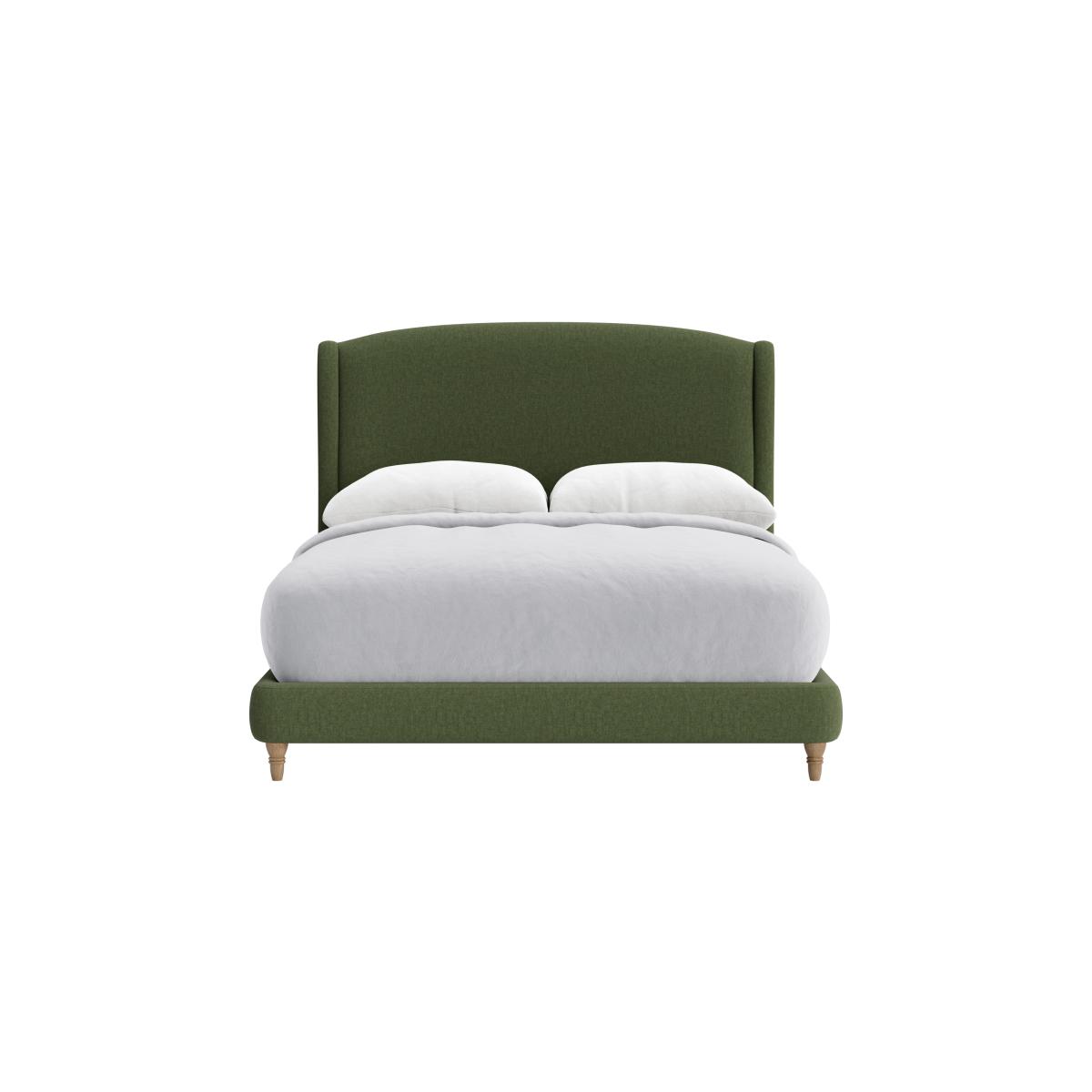 I love this bed frame for its clean, modern silhouette and the plush, inviting shape of the headboard. It’s versatile enough to work well in various interiors - from contemporary spaces with minimalism to cosy, eclectic bedrooms. The deep green colour adds a subtle touch of colour without overpowering the room, making it a great statement piece. For styling, consider pairing it with neutral bedding and layered textiles for a relaxed vibe, or add metallic accents and bold cushions for a more luxe look. Its simple, tapered wooden legs give it a sense of understated elegance that can be complemented with soft bedside lighting and a textured rug underneath to ground the space.