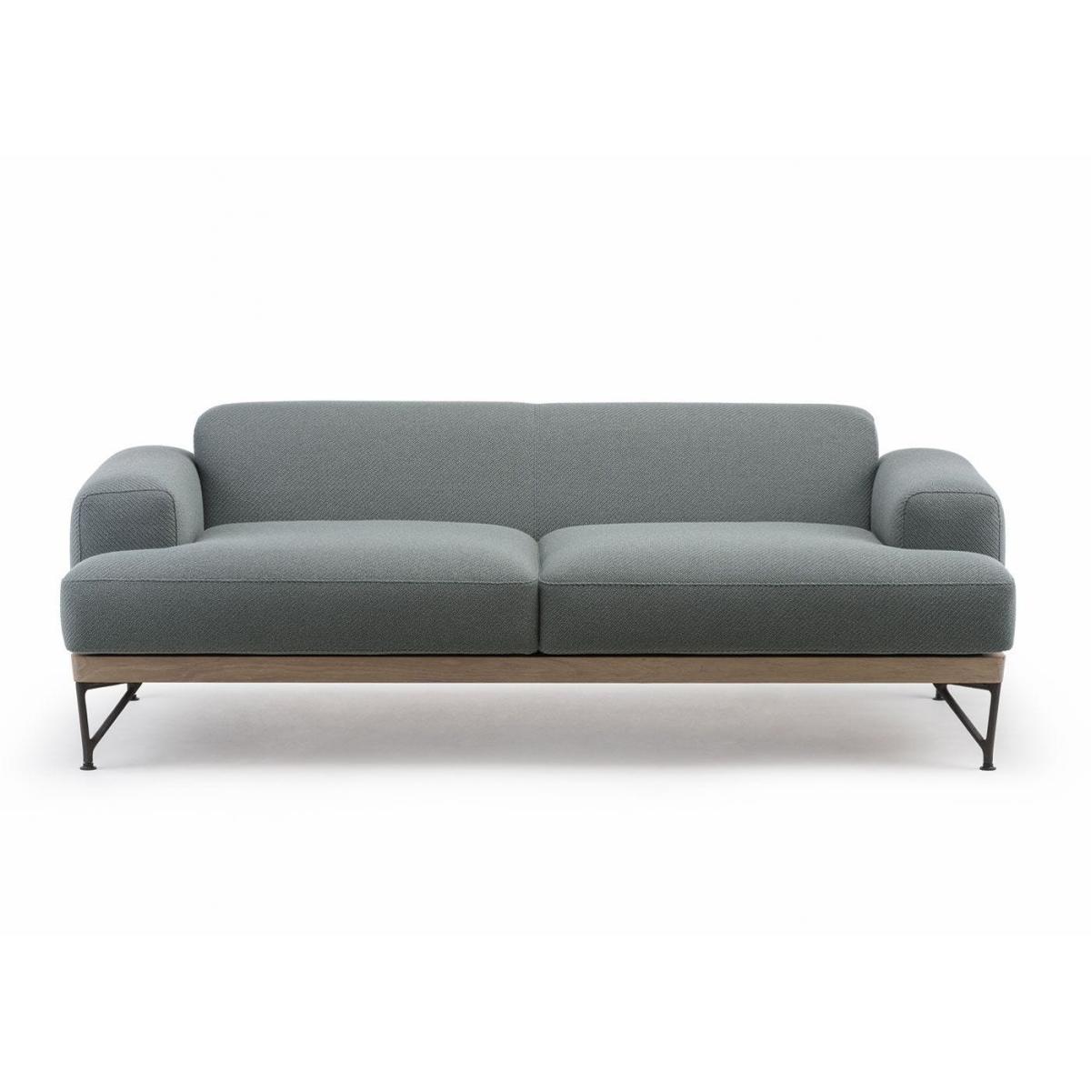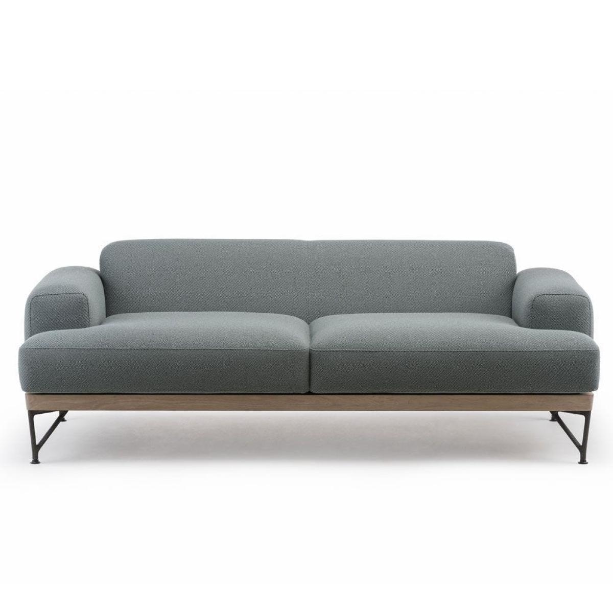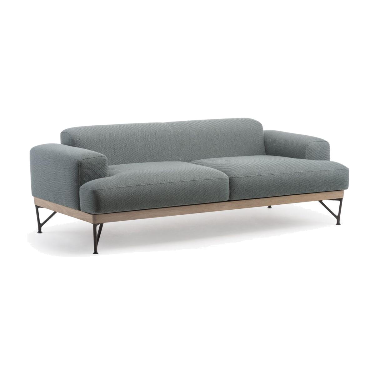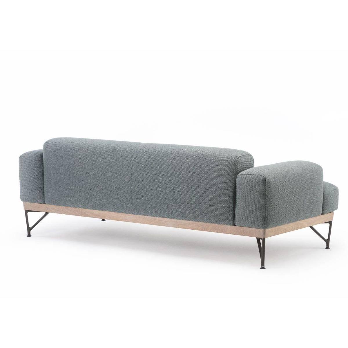Designed by Matthew Hilton for De La Espada, the 386. M Armstrong 2-Seater Sofa boasts a white oiled oak base with teal Coda 2 962 upholstery. The design is defined by its rounded curves, comfortable wide arms and low back. The cool and brooding sofa is finished with cast-iron legs that add a light industrial touch to the design. The sofa is upholstered in Kvadrat’s Coda 2 fabric in a teal-green finish. Designed by Norway Says and Per Bjørnsen, Coda 2 is woven using a new wool blend that lends the fabric a three-dimensional finish.