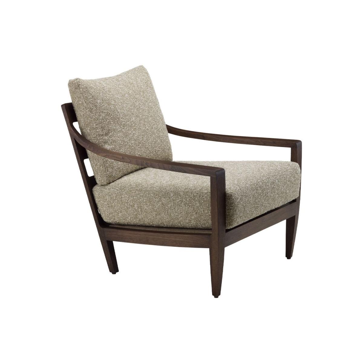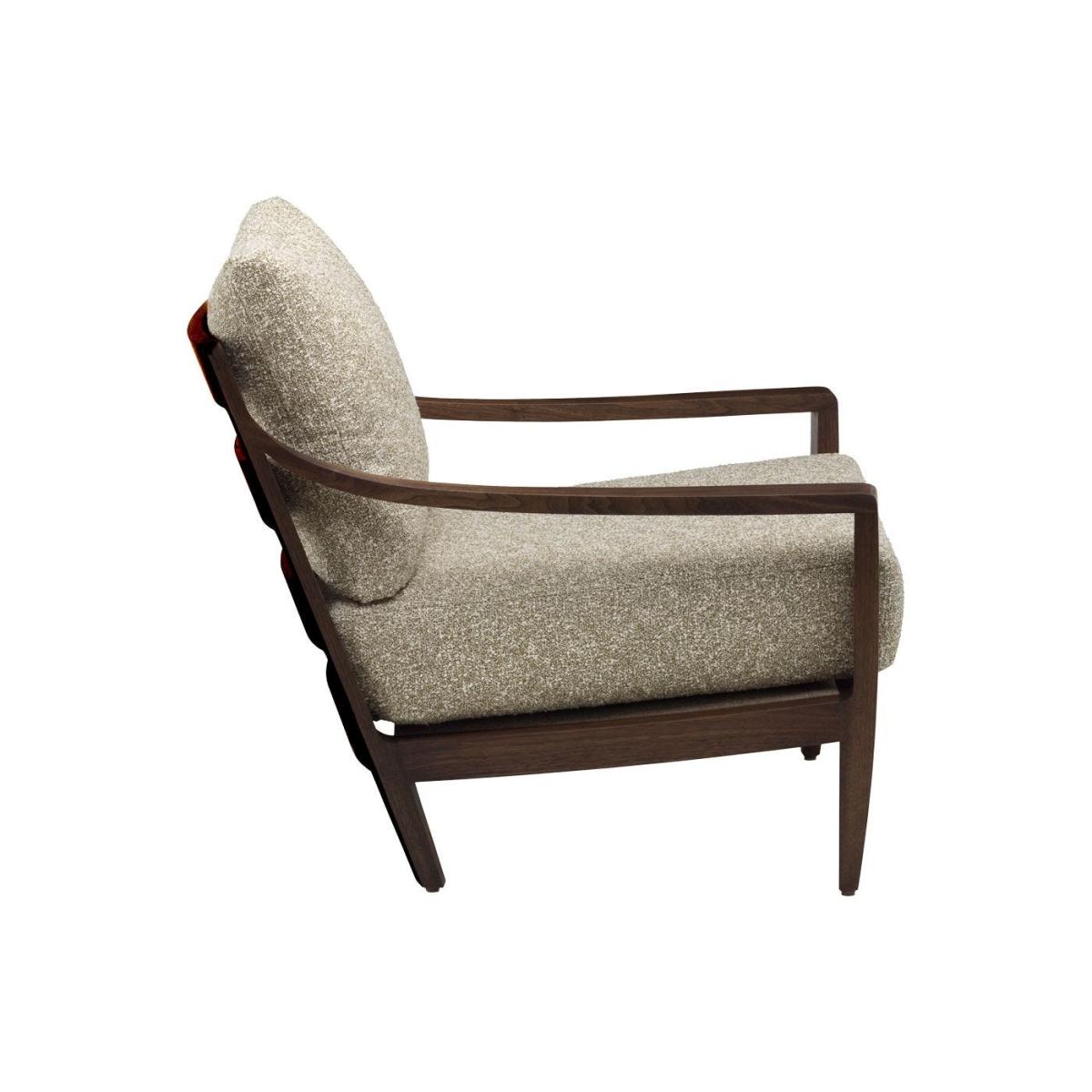 I really rate the low lounge chair for its crisp lines, solid oak frame and plush, neutral wool upholstery - it feels both relaxed and refined. It sits comfortably in Scandi-style, mid-century modern or pared-back contemporary interiors, adding warmth without overpowering a space. For styling, layer in a slim side table and an arched floor lamp to emphasise its low profile, then introduce a textured throw or lumbar cushion in a complementary shade. Place it on a subtle patterned rug or beside a pared-back sofa to create a relaxed reading nook or conversational corner.