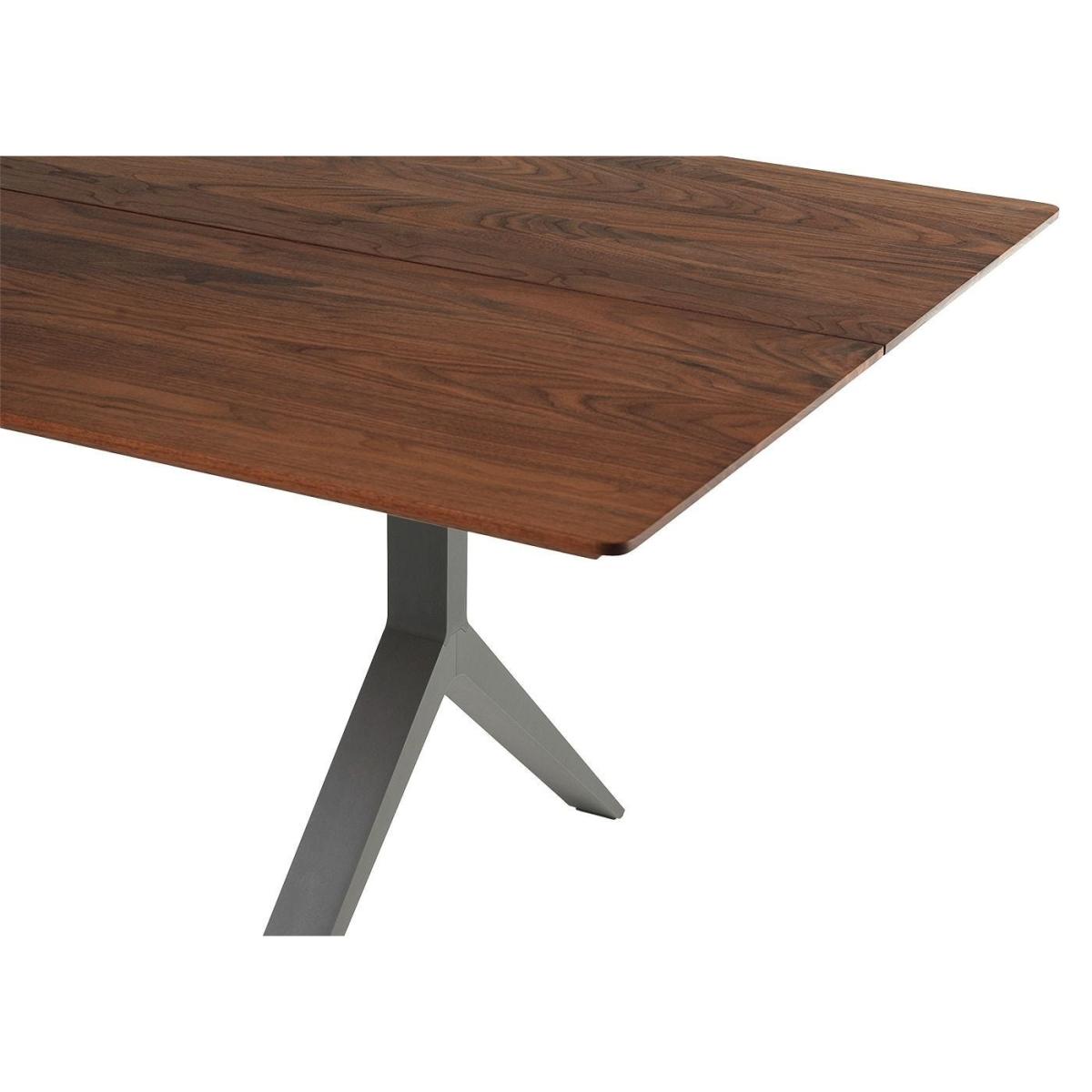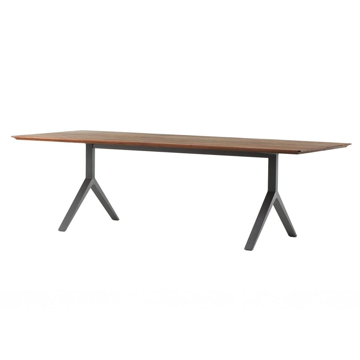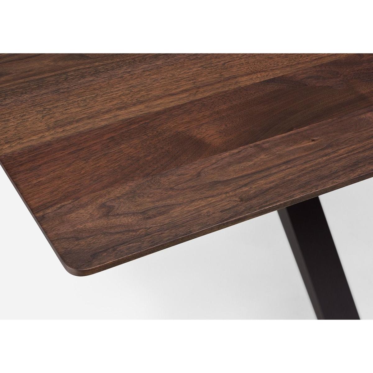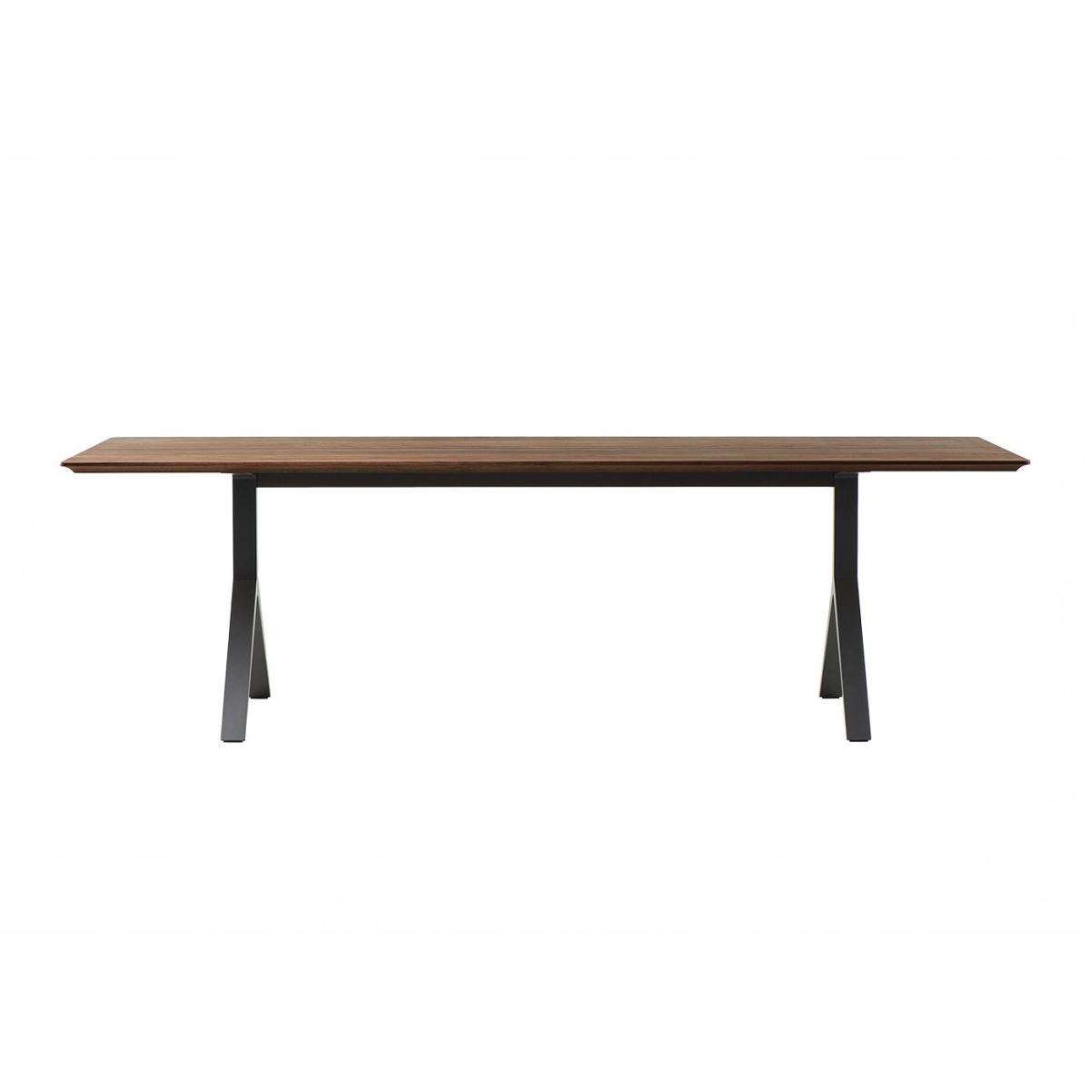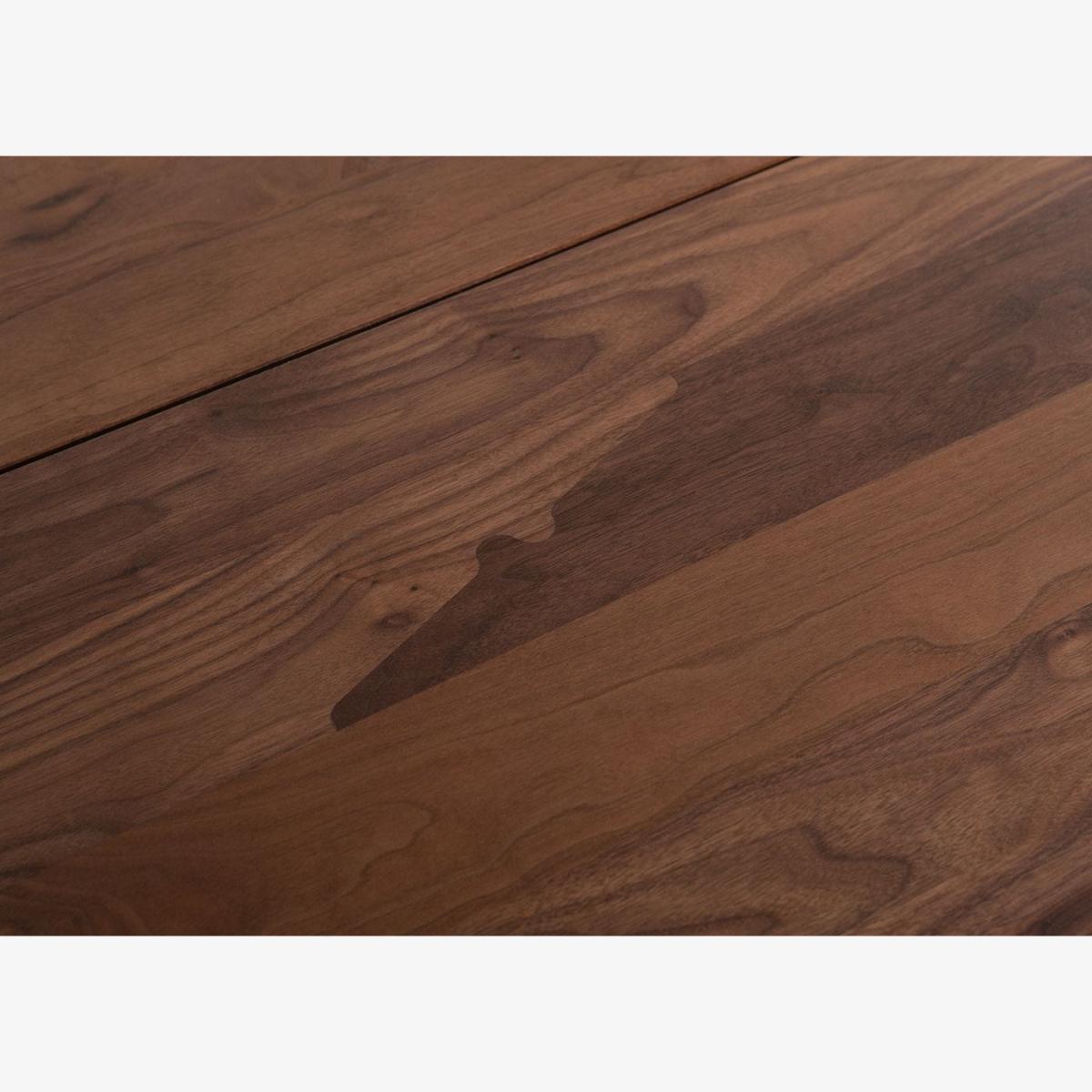 Inspired by the landscapes of West Yorkshire, the Overton Table by Matthew Hilton celebrates craftsmanship and innovation. Expertly made in Portugal by De La Espada, its solid walnut top showcases intricate joinery that allows for impressive table lengths and enduring strength. The black anodised aluminium detail through the centre adds a modern accent, while the engineered black leg frame ensures balance and stability.