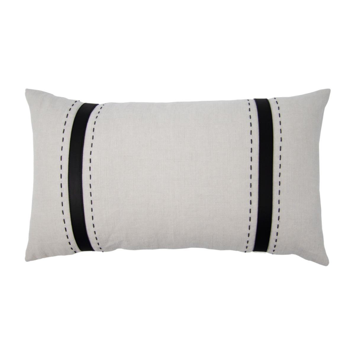 This cushion made from Bracken fabric features a bold, leather strap detail and de Le Cuona’s signature pick-stitching detail in cord. The fabric has been designed to reflect the beautiful, raw texture of linen. Husks are left visible on the fabric to give an authentic natural appearance, adding to the cushion’s character. Duck feather and down cushion pad included.