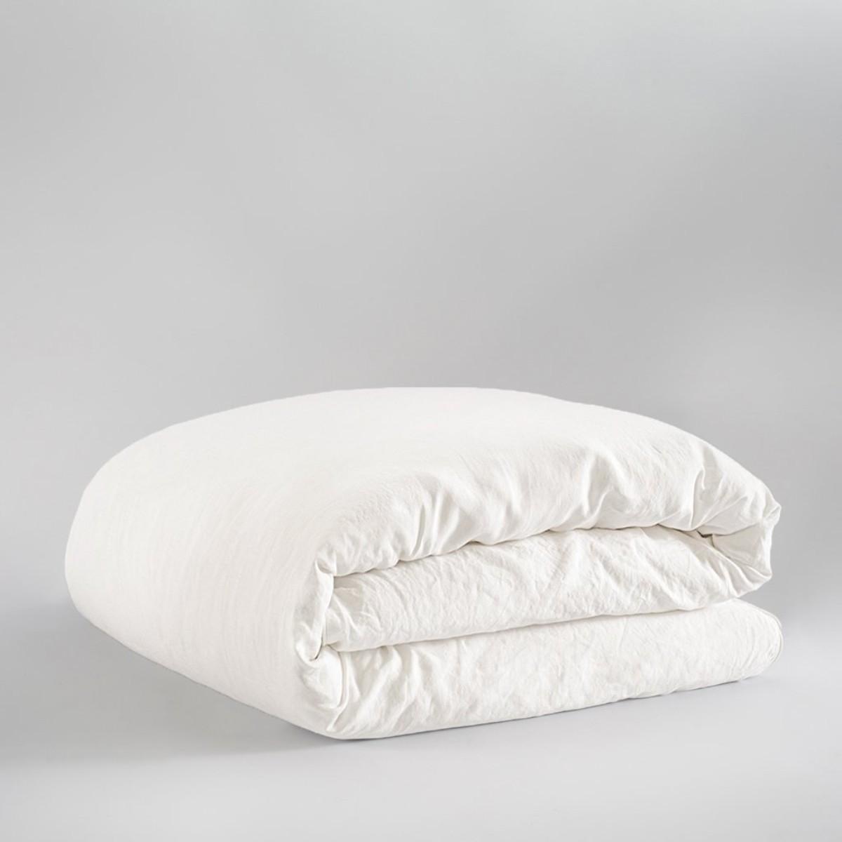 This Pure Piped Duvet Cover in white is a part of the de Le Cuona Pure Bed Linen collection, a 100% organic linen bed linen range designed with health and wellbeing in mind. The collection is certified to the Global Organic Textile Standard (GOTS), guaranteeing the items have been sustainably produced without harmful chemicals, which could be emitted in a living space and inhaled or consumed unknowingly. Linen bed linen is known for increasing sleep quality due to its hypoallergenic and thermoregulation qualities; it is also durable and naturally anti-bacterial.