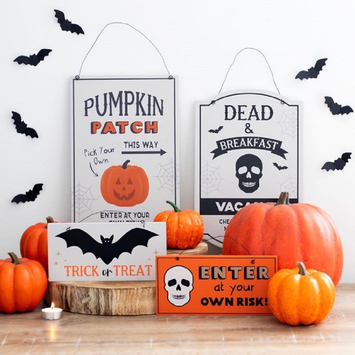 With Halloween becoming bigger year after year, this light-hearted hanging sign is sure to get the season off to a spooky start with a ghoulish skull, bats and 'Dead Breakfast' text.