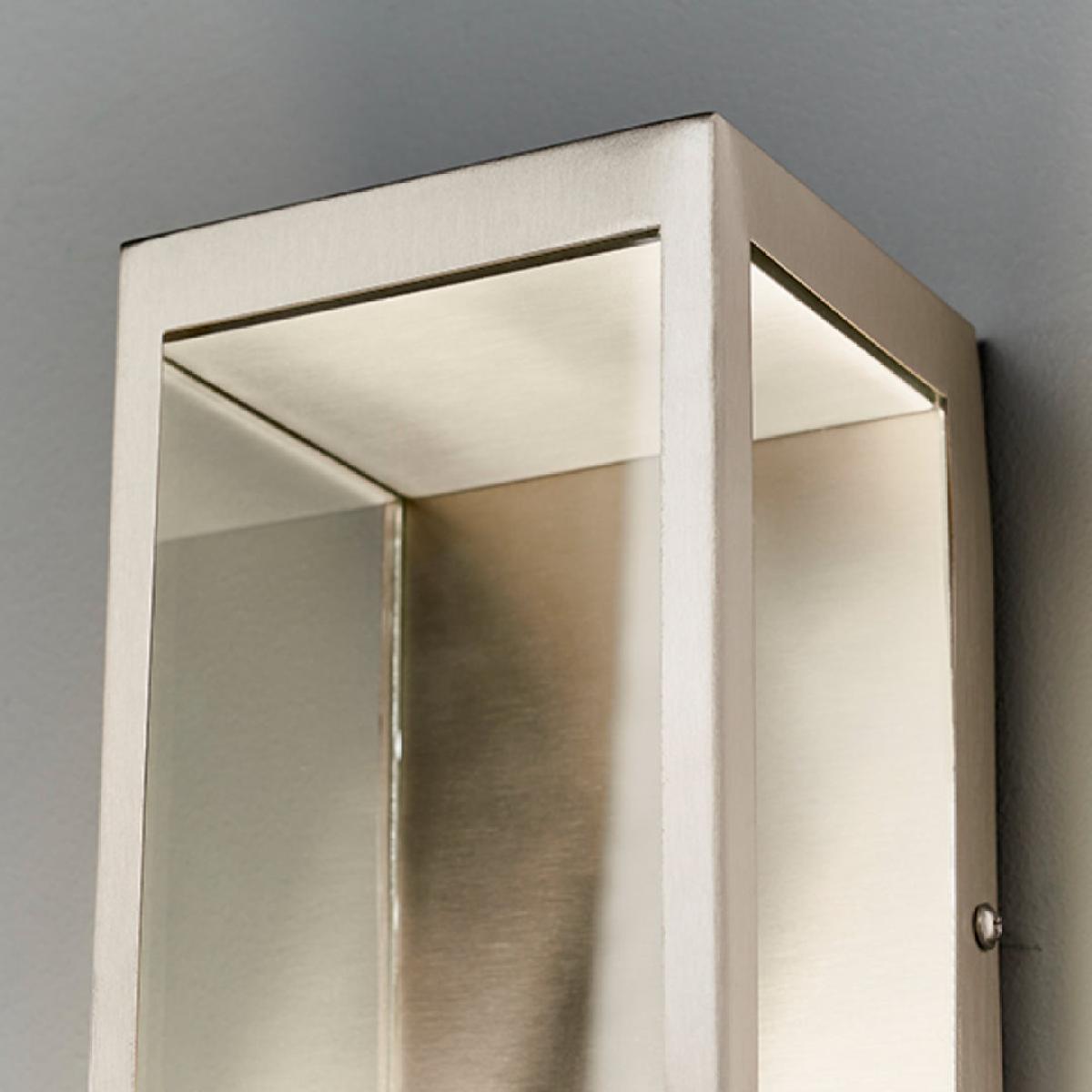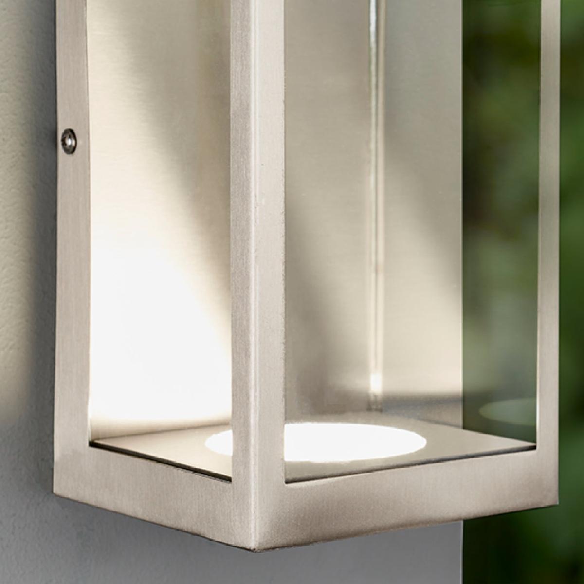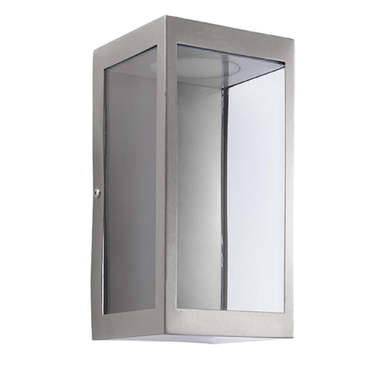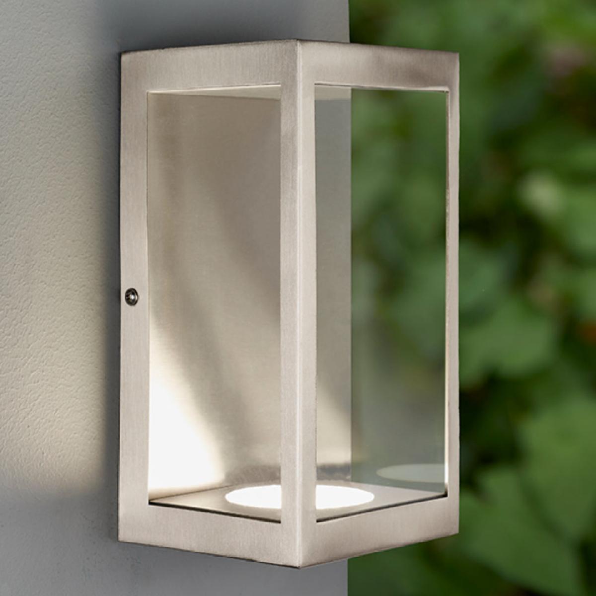 A smart contemporary outdoor lighting choice. The Dean is a clean-lined brushed steel box lantern with integrated LED encased in glass panels.  This product is IP44 rated for safe exterior use.   A smart contemporary outdoor lighting choice. The Dean is a clean-lined brushed steel box lantern with integrated LED encased in glass panels.  This product is IP44 rated for safe exterior use.