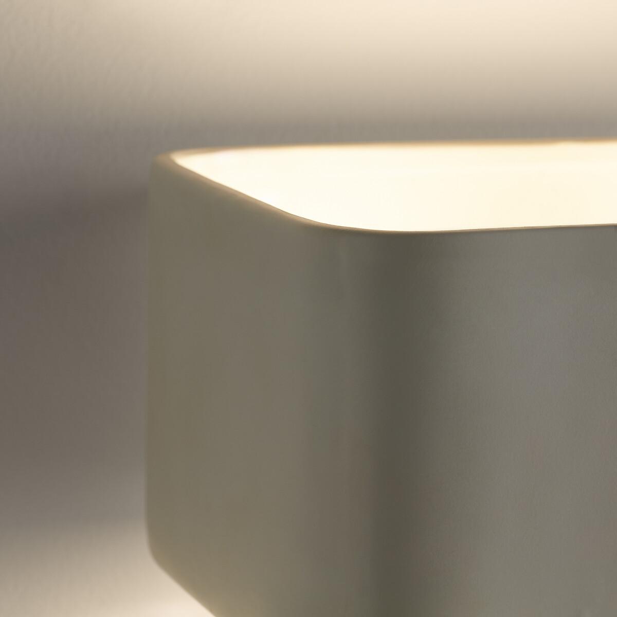 This rectangular wall light from our Debou collection is made from softly moulded ceramic for a pleasingly organic effect. With no visible wires or mechanisms, it sits seamlessly against white walls or creates a bold contrast against surfaces of different shades, stunning in its simplicity. Product Details • Rectangular rounded corners in poly-acrylic ceramics with a soft matt finish • 2 GU10 sockets for use with 35 W max (bulbs not included)Dimensions • Length 22 cm x Depth 16 cm x Height 10 cmDelivery:. Available for home delivery. Note! Please check that all access points are large enough to accommodate your delivery (doors, stairs, lifts).Dimensions and weight of parcel: • Length 34cm x Width 27 cm X Height 23 cm • 1.86 Kg