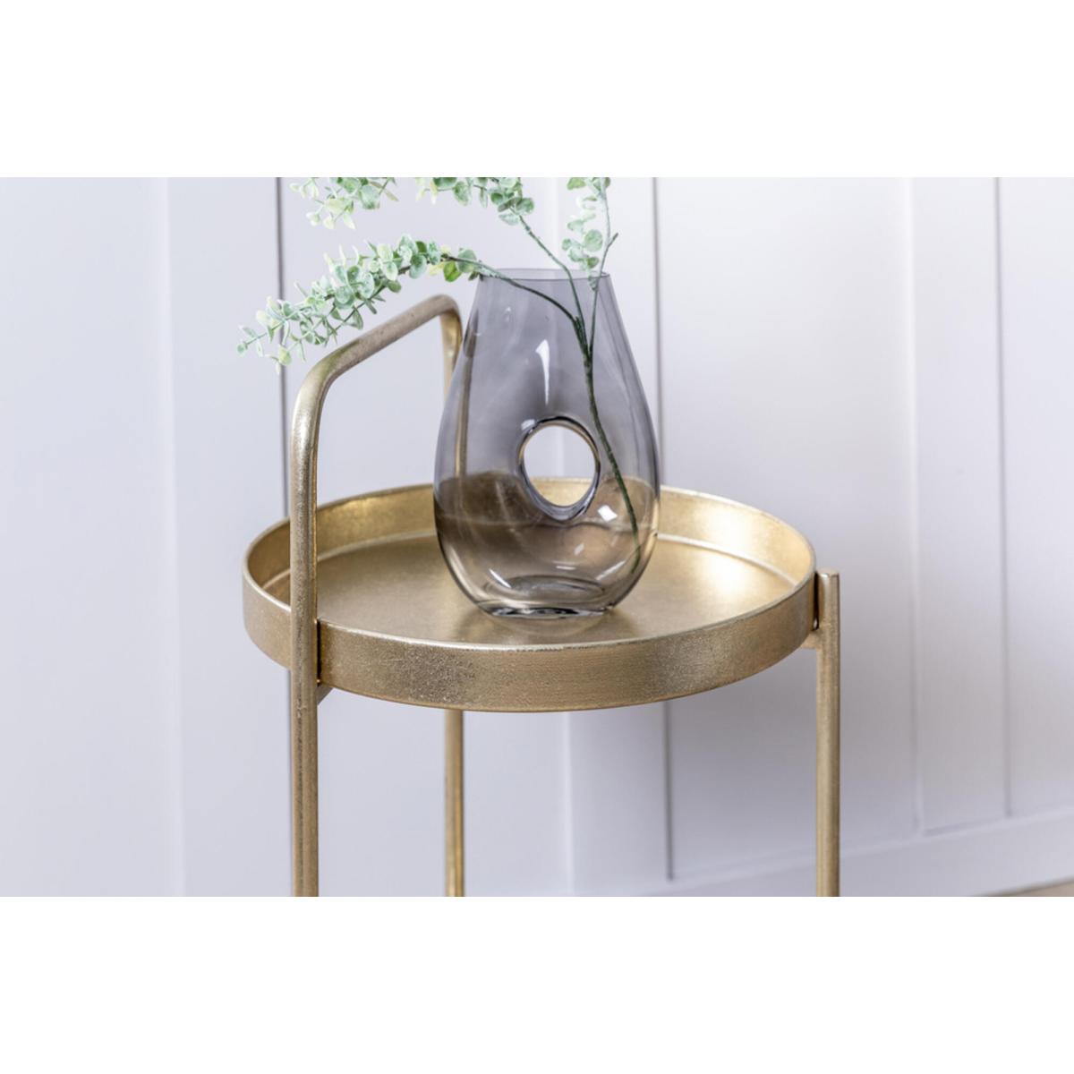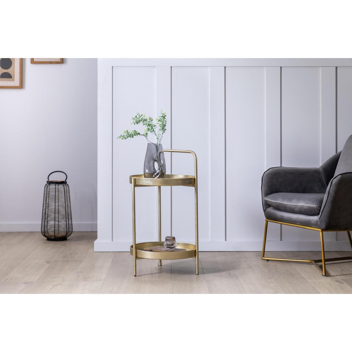A double-decker tray style side table with a quirky yet functional handle. Beautifully crafted and finished in a gorgeous gold leaf, visitors won’t be able to 'stop' themselves from admiring this piece. Packed flat for easy delivery to any room.