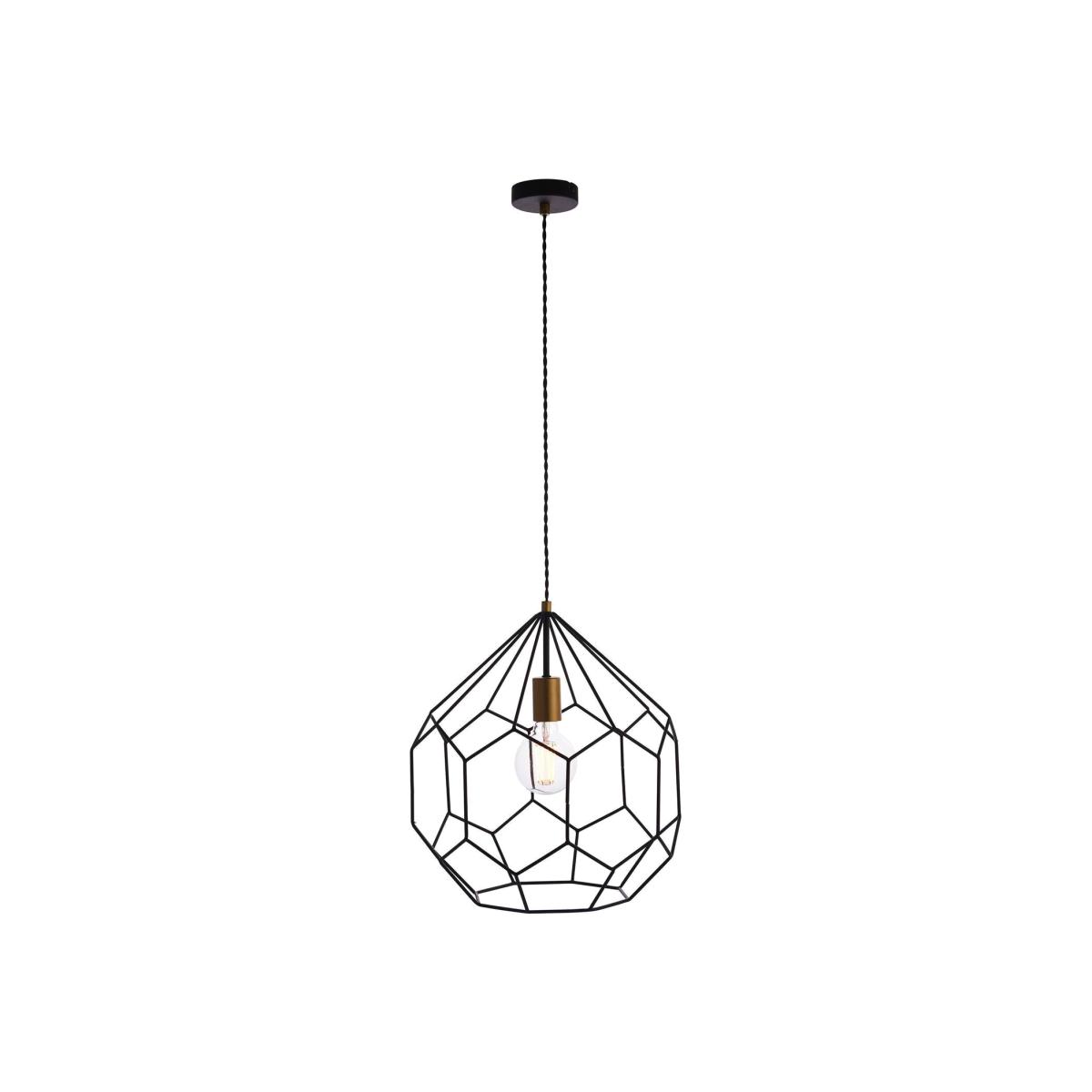 A cool geometric shaped wire frame pendant light, finished in a matt black finish with smart satin gold painted detail. Creating amazing light patterns and suspended from height adjustable twisted black fabric flex, this cool pendant light is perfect for use with filament LED lamps.