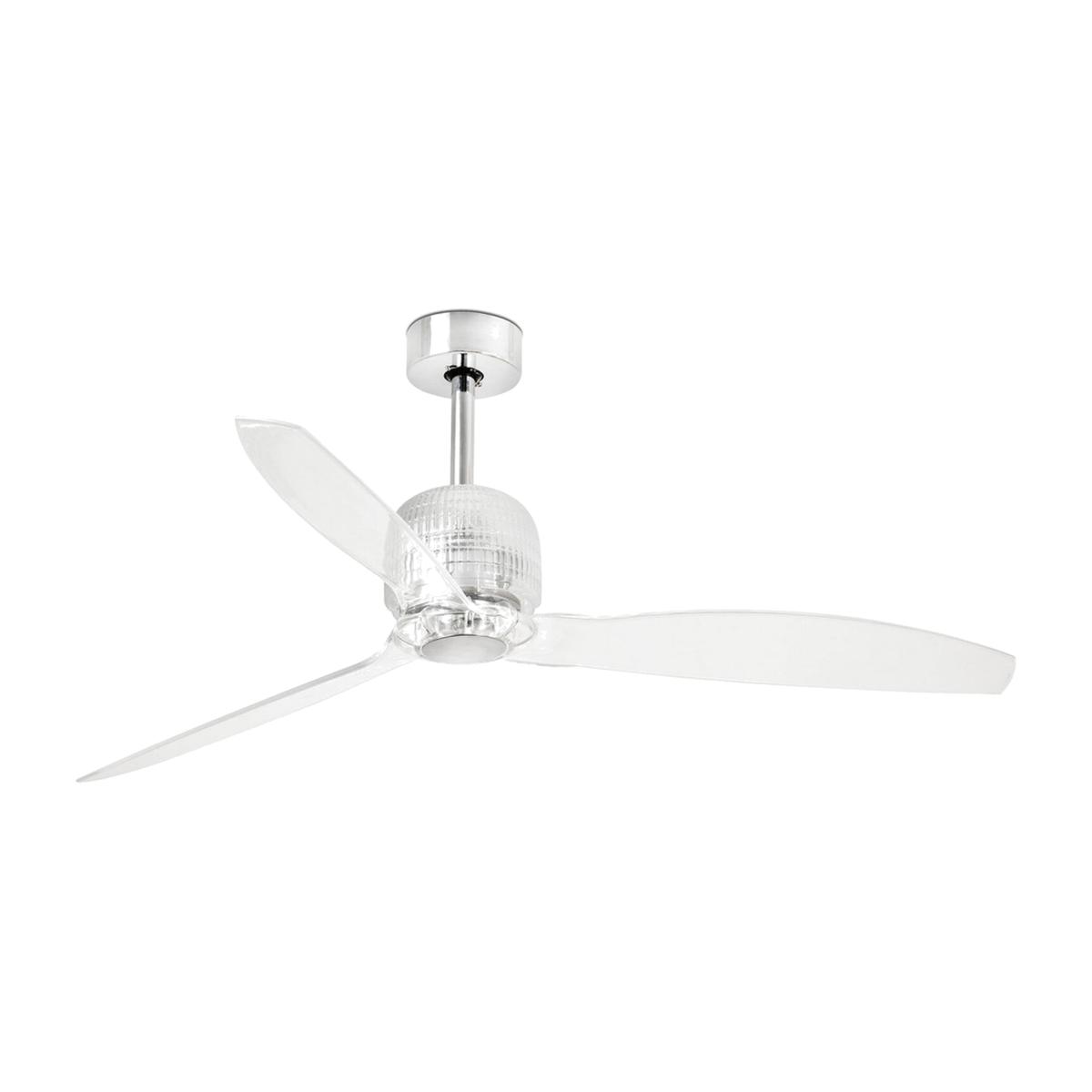 DECOFAN is the sophisticated version of JUST FAN which has a decorative glass accessory incorporated. DECO FAN is a ceiling fan with an industrial and modern style. This ceiling fan is ideal for the ventilation of areas ranging from 13m2 to 17'6m2 and has a low-consumption DC motor. This chrome fan with transparent blades comes with a reverse function summer-winter, so you can also use it in winter, improving the efficiency of your heating system. Activated by remote control included. Sophisticated and good looking the Deco White Ceiling Fan offers brilliant LED light as well as a cooling effect. Fashioned with three blades to move the air efficiently winter, spring, summer and fall this ceiling fan has adjustable speeds to find your perfect comfort zone.