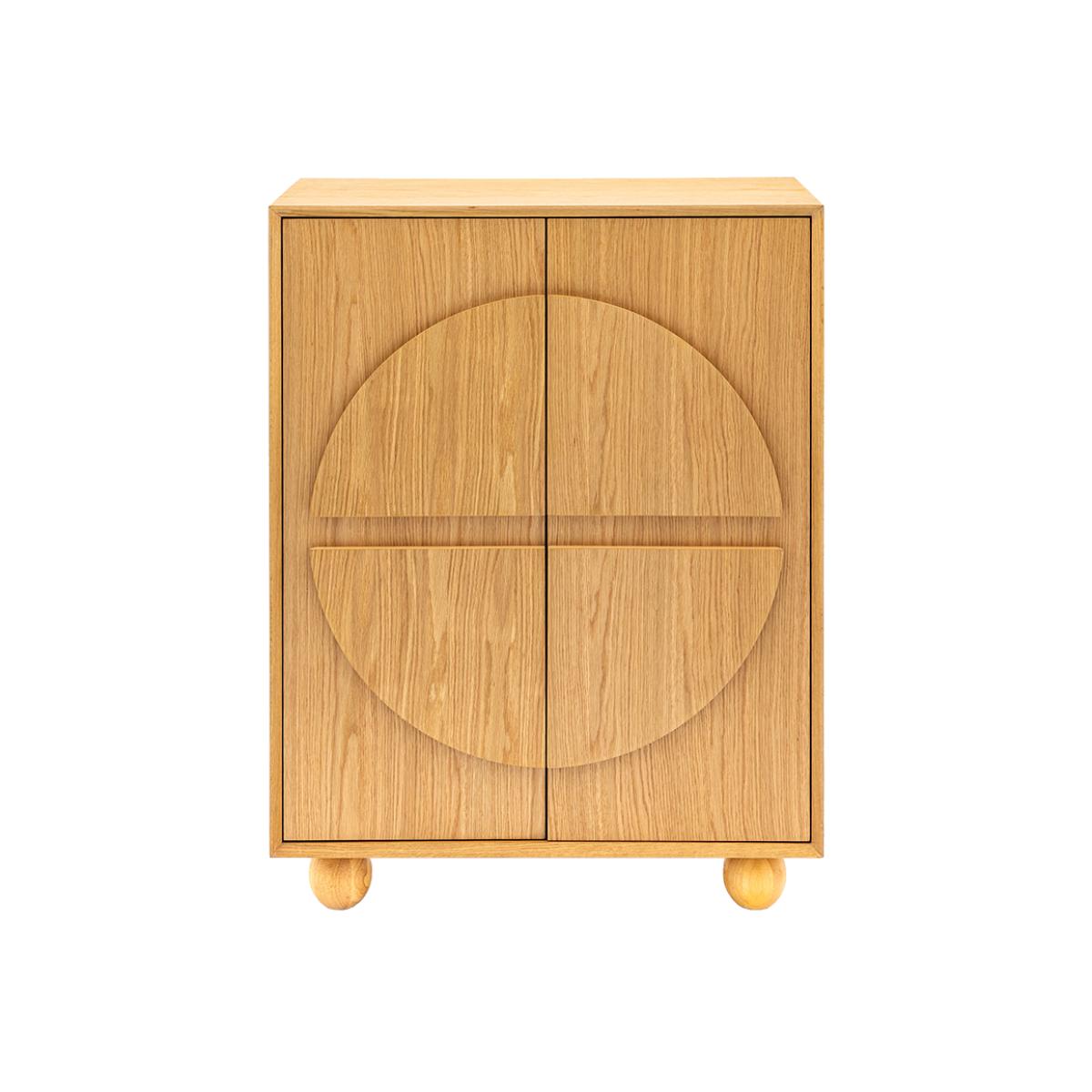 Introducing our Deco Cupboard. Featuring a captivating geometric pattern, this piece is bound to be standout design in your home. Made from solid oak and veneers, not only is the piece's natural beauty shown but it also offers durability.