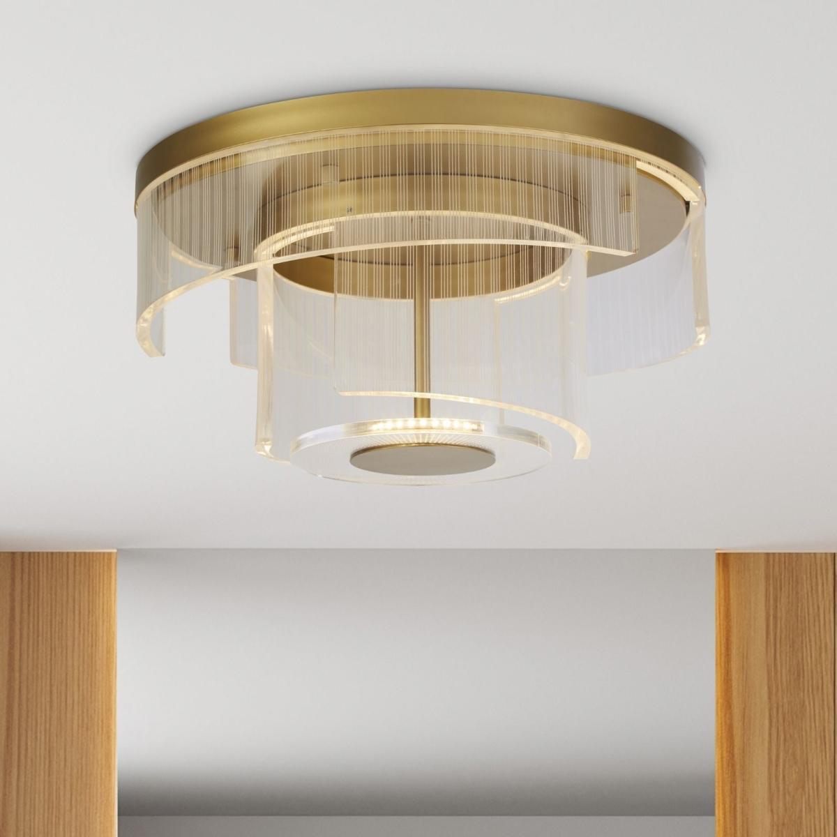 Deco LED flush ceiling light, an Art Deco-inspired fixture featuring a gold metal plate with a swirling acrylic centrepiece. The Deco LED flush ceiling light channels the glamour of the Art Deco era into a sleek and contemporary design. Featuring a lustrous gold metal plate, this fixture is adorned with a swirling acrylic centrepiece that diffuses light beautifully, casting a soft and elegant glow throughout the room. Perfect for low ceilings or spaces that demand a touch of sophistication, the Deco ceiling light combines timeless charm with modern functionality. Its energy-efficient integrated LED design ensures both style and sustainability, making it a dazzling addition to any home. Deco LED flush ceiling light, an Art Deco-inspired fixture featuring a gold metal plate with a swirling acrylic centrepiece. The Deco LED flush ceiling light channels the glamour of the Art Deco era into a sleek and contemporary design. Featuring a lustrous gold metal plate, this fixture is adorned with a swirling acrylic centrepiece that diffuses light beautifully, casting a soft and elegant glow throughout the room. Perfect for low ceilings or spaces that demand a touch of sophistication, the Deco ceiling light combines timeless charm with modern functionality. Its energy-efficient integrated LED design ensures both style and sustainability, making it a dazzling addition to any home.