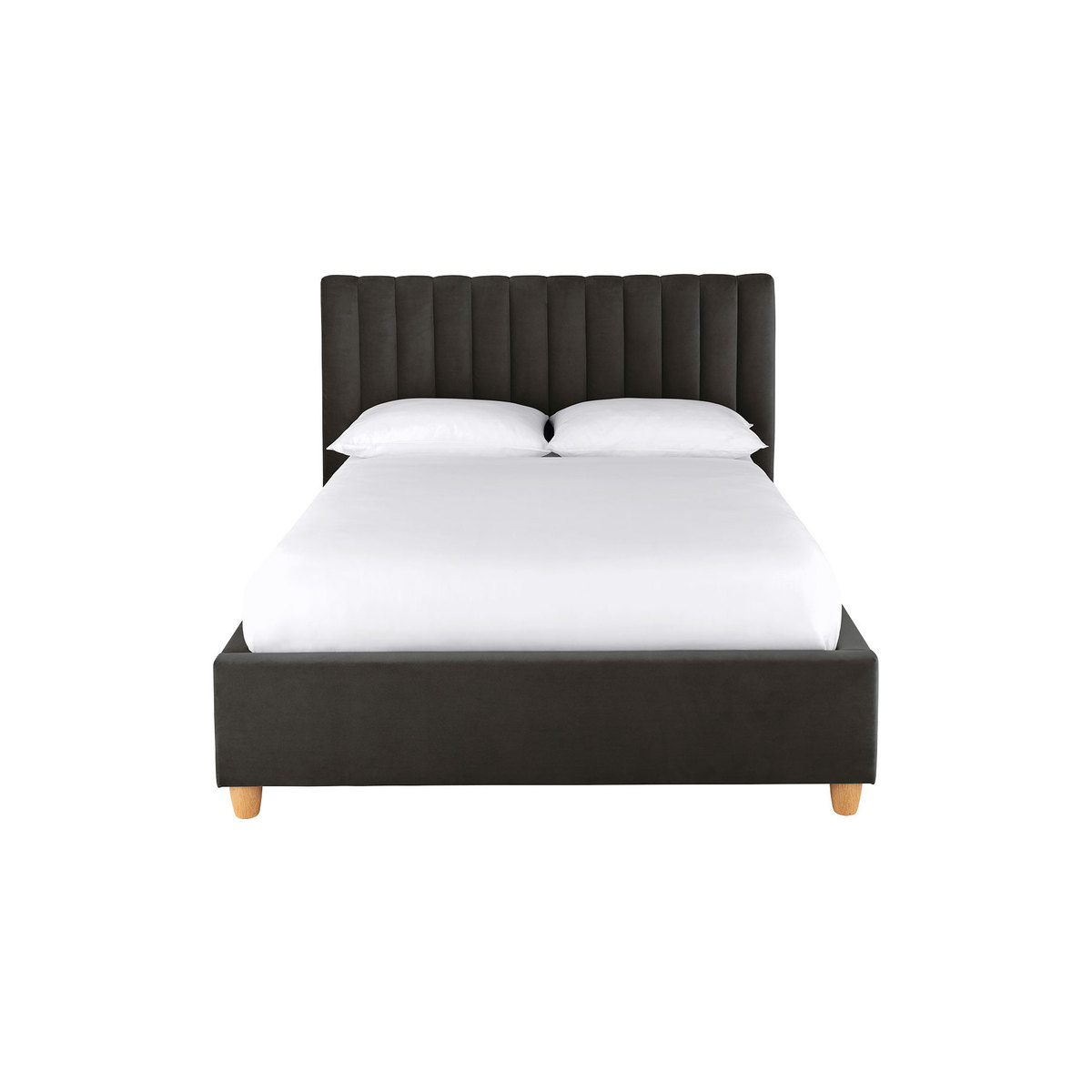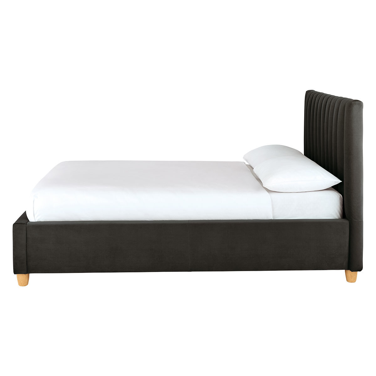 Upholstered in plush velvet for big visual impact, make your morning a little more luxurious with the Deco grey velvet kingsize bed. A modern update on a classic fan-shaped headboard, the deeply padded design’s pulled detailing is matched harmoniously with the bedframe’s solid wood legs, padded sides and sleek modern proportions. With a deep pile and soft-to-touch fabric, each art deco headboard and bed are upholstered by hand resulting in a cleaner, more opulent finish. The soft fabric offers an updated vintage feel to your bedroom alongside stability and comfort and works best paired with muted toned bedding. Adorn Deco with cushions and throws for a cosy, finished look. Part of the Deco range, the bed is available in a pink velvet finish and as a double bed frame.