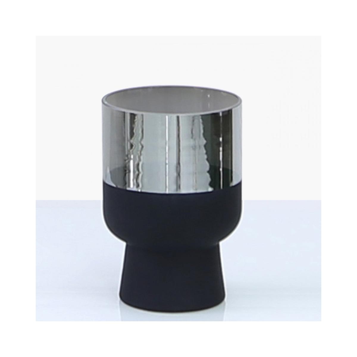 Deco Home 19cm Glass Hurricane Vase Black And Chrome / Chrome