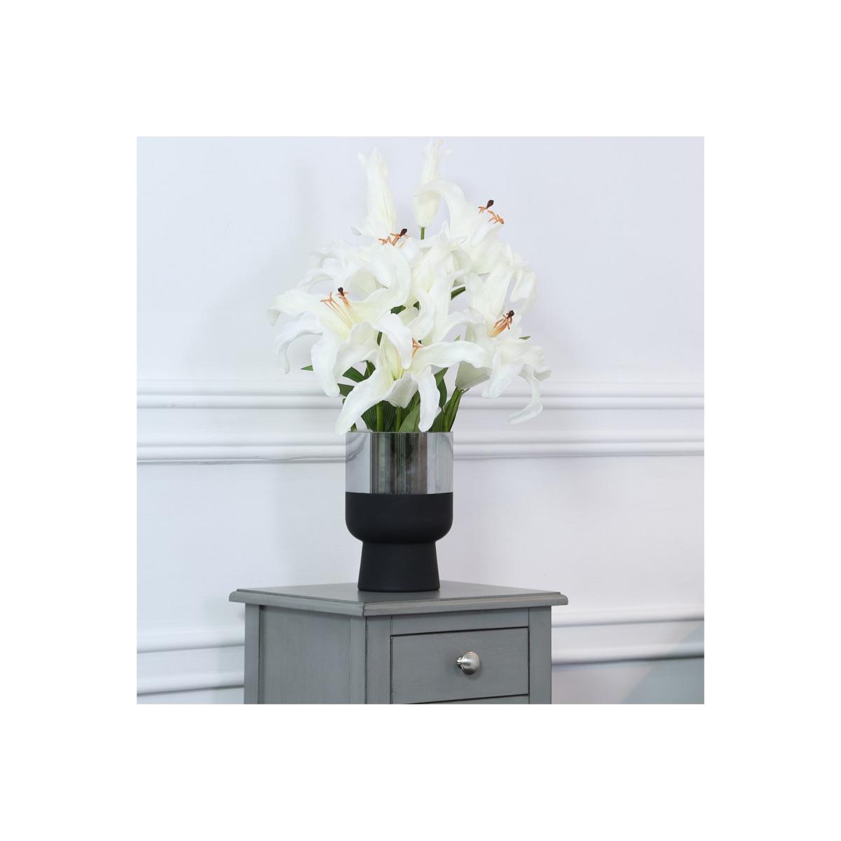 I love the sleek, modern look of the Deco Home hurricane vase in black and chrome-it’s a versatile piece that can elevate both contemporary and minimalist interiors. The contrast between the black base and chrome finish offers a sophisticated edge, making it ideal for coffee tables, sideboards, or entryway displays. For styling tips, consider filling it with simple, elegant floral arrangements like white lilies or tall grasses, or even using it as a standalone sculptural feature. It works particularly well in monochrome or neutral colour schemes, but can also serve as a statement piece in more vibrant spaces when paired with complementary decor elements. Its 19cm height makes it unobtrusive yet impactful - perfect for adding a touch of chic to everyday settings.