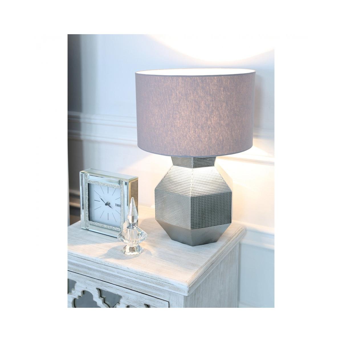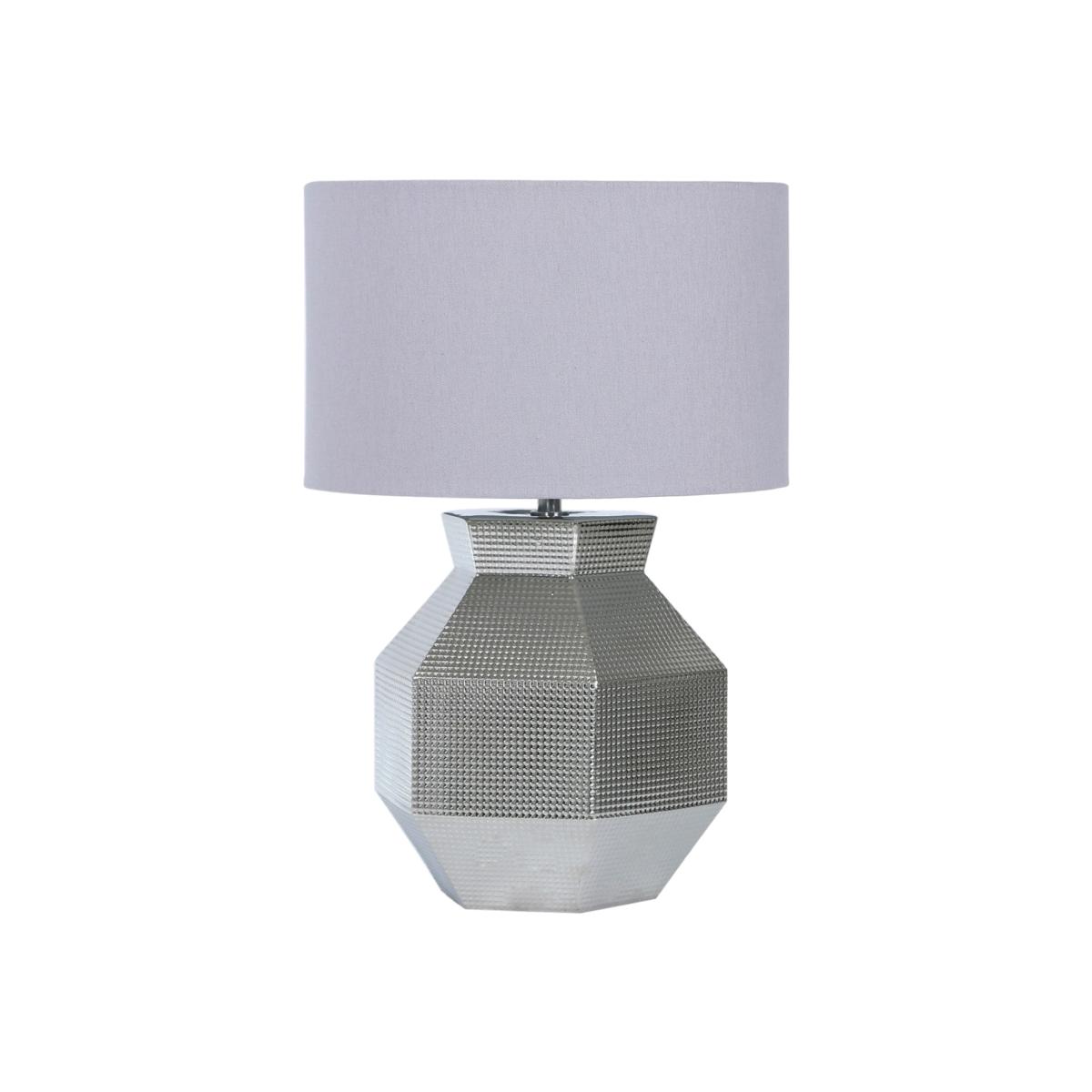 Deco Home 48cm Silver Ceramic Hexagon Table Lamp With Grey Linen Shade