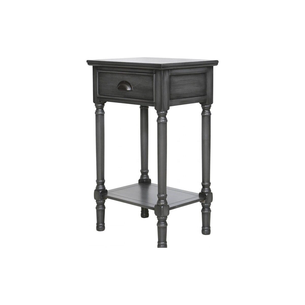 An elegant addition to any room, the grey Arabella end table is constructed of wood with a small drawer with a metal handle.