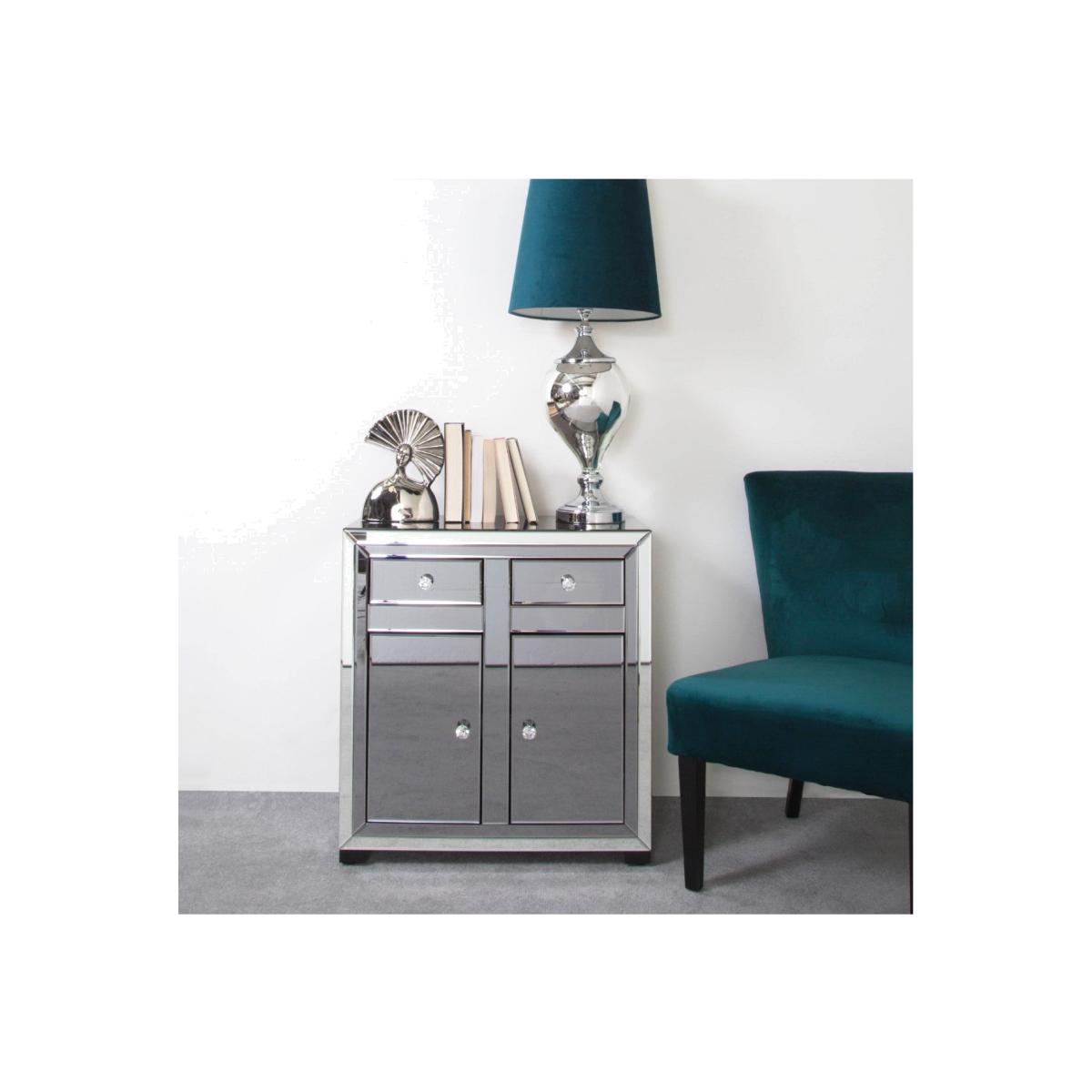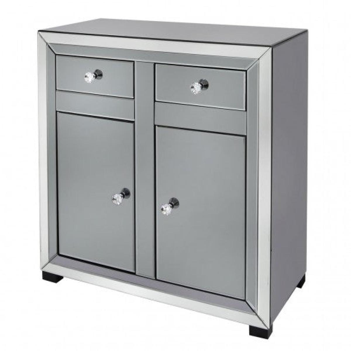 Deco Home Arctic Noir Black Smoked Glass Mirrored 2 Drawer 2 Door Sideboard