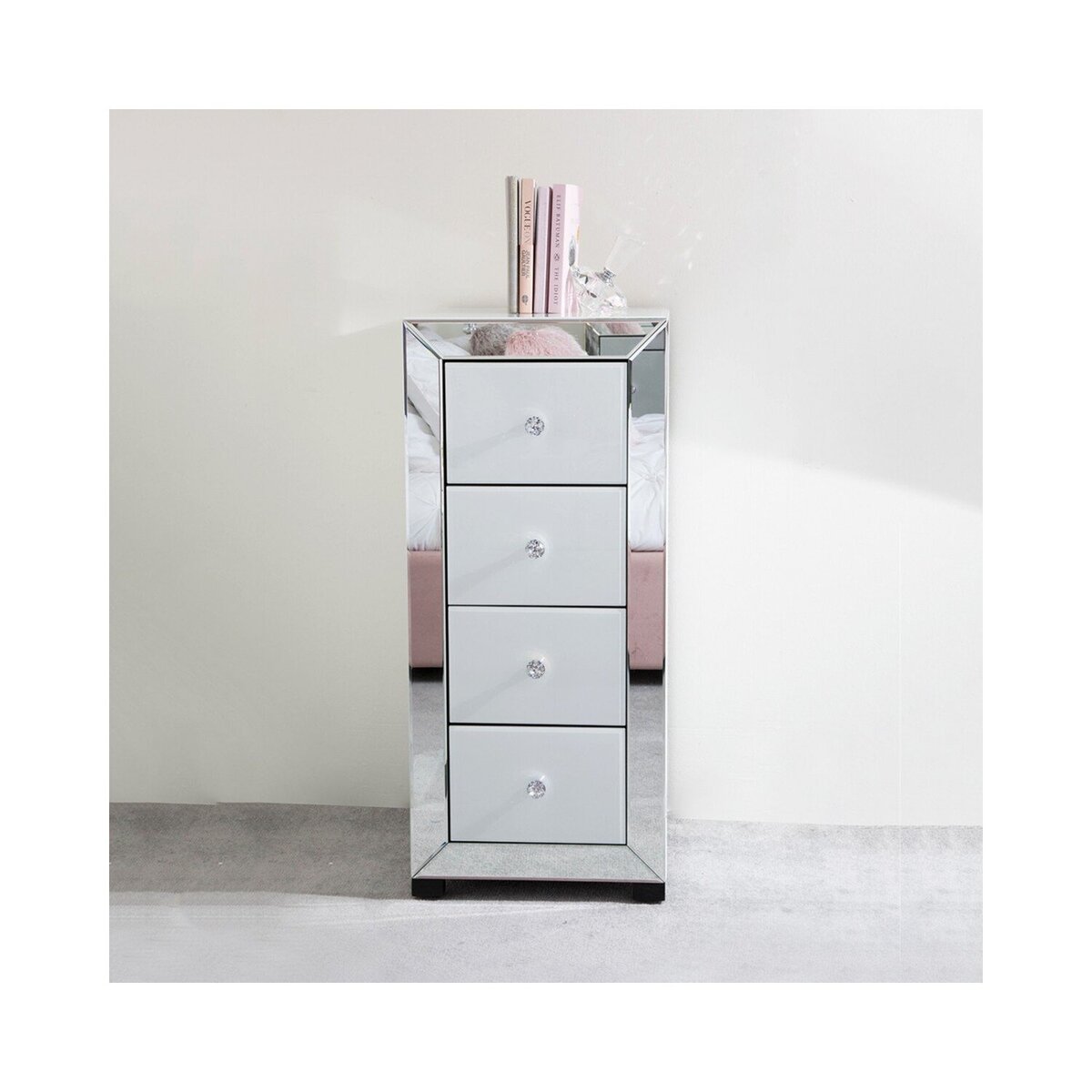 Deco Home Arctic White Mirrored Glass 4 Drawer Tallboy Chest Of Drawers