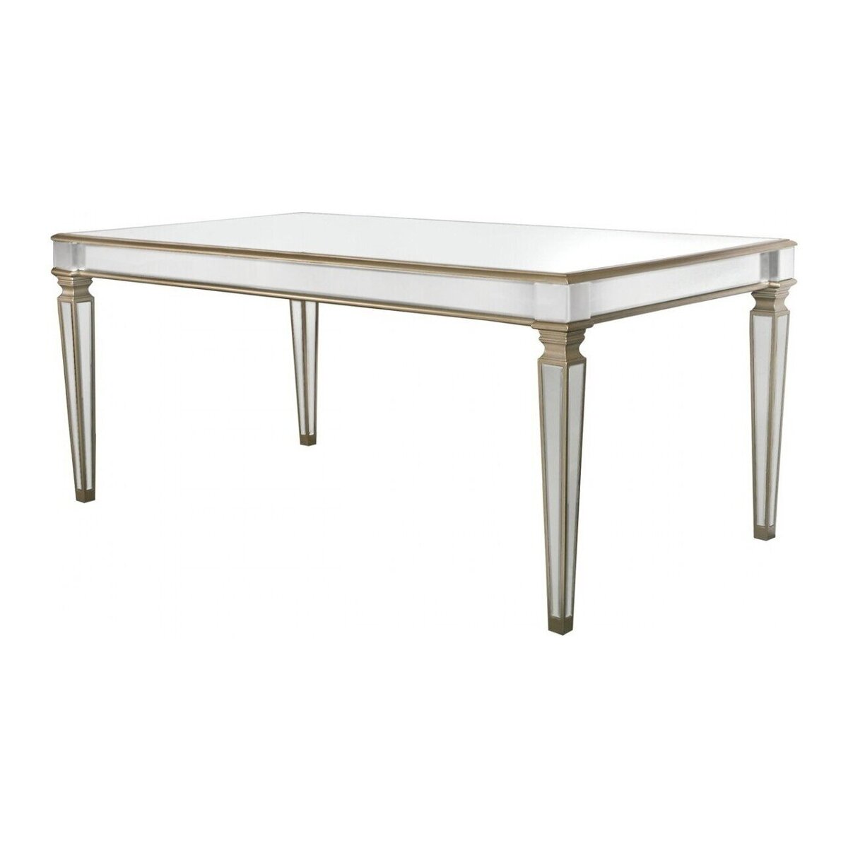 I love this dining table for its striking combination of elegance and practicality. The mirrored surface instantly adds a sense of light and space to a room, making it ideal for smaller or more contemporary interiors. It works particularly well in classic, vintage, or glamorous styles, where its gold accents can be complemented with rich textiles and metallic accessories. When styling, consider keeping the surrounding décor minimal to let the table be the statement piece; adding a centrepiece like a floral arrangement or a sleek set of candelabras can elevate the look. Overall, it’s a versatile piece that can add both sophistication and a touch of glitz to your dining space.