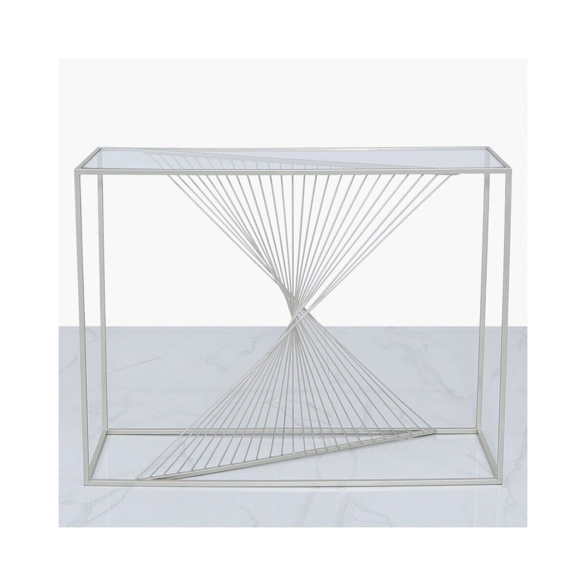 Deco Home Ava Silver Metal And Clear Glass Console Table With Unique Design