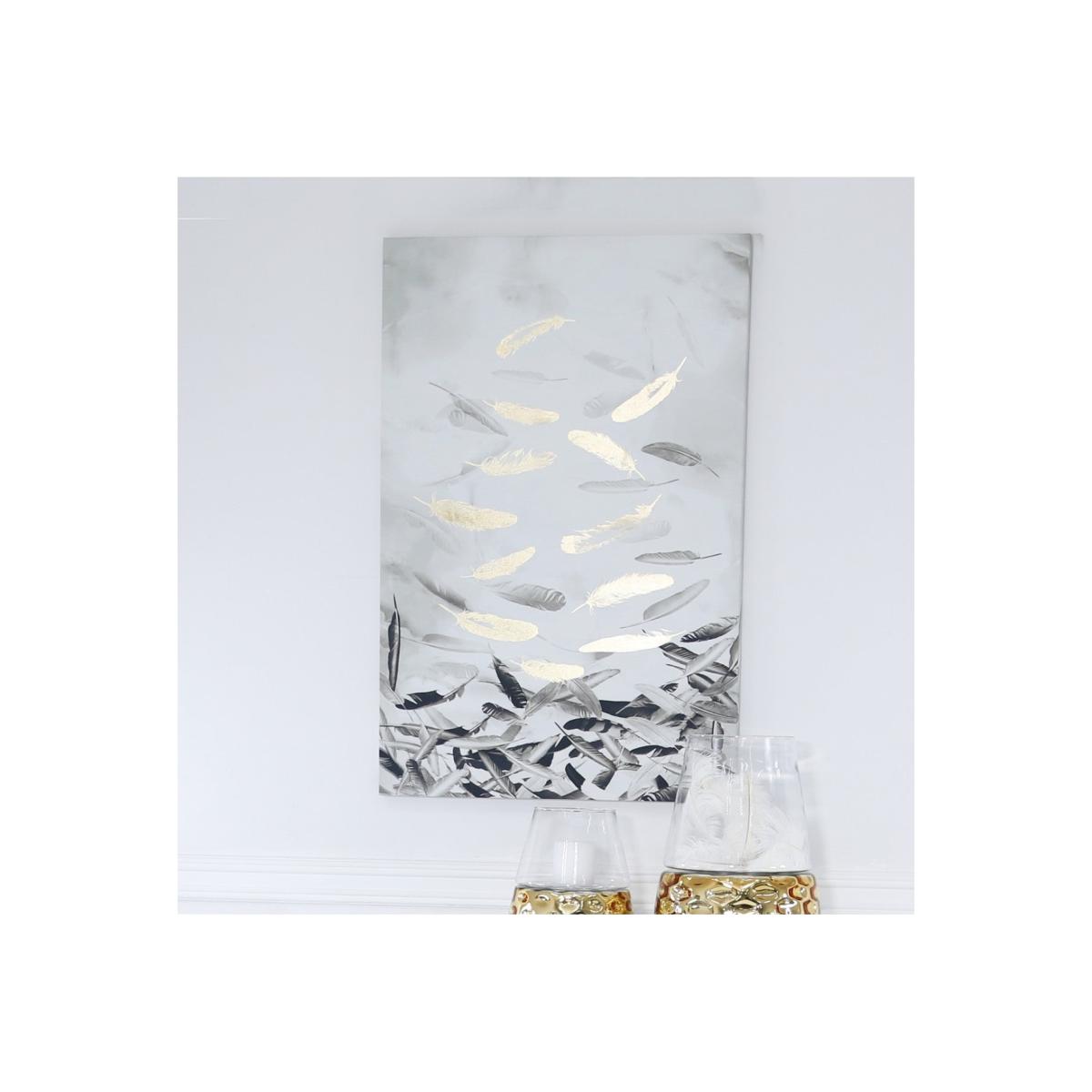 Deco Home Black And Gold Feather Print Canvas Wall Art / Gold