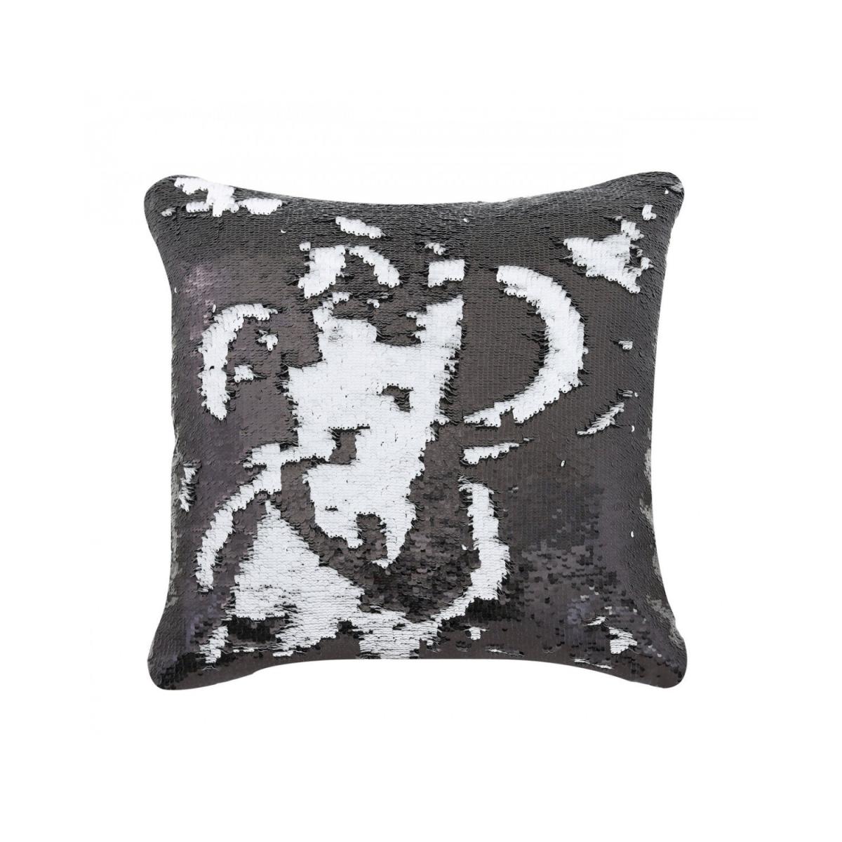 Gorgeous shiny sequin mermaid removable cushion cover and cushion pad. As you brush the sequins over the colours blend from black to white to create a gorgeous two tone effect. Hand wash only.