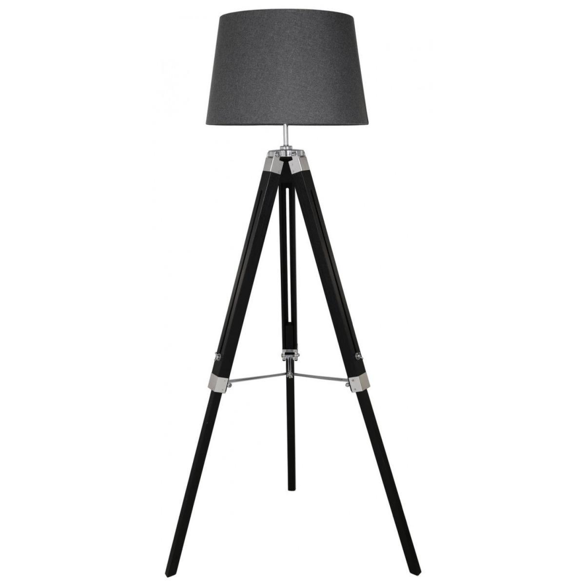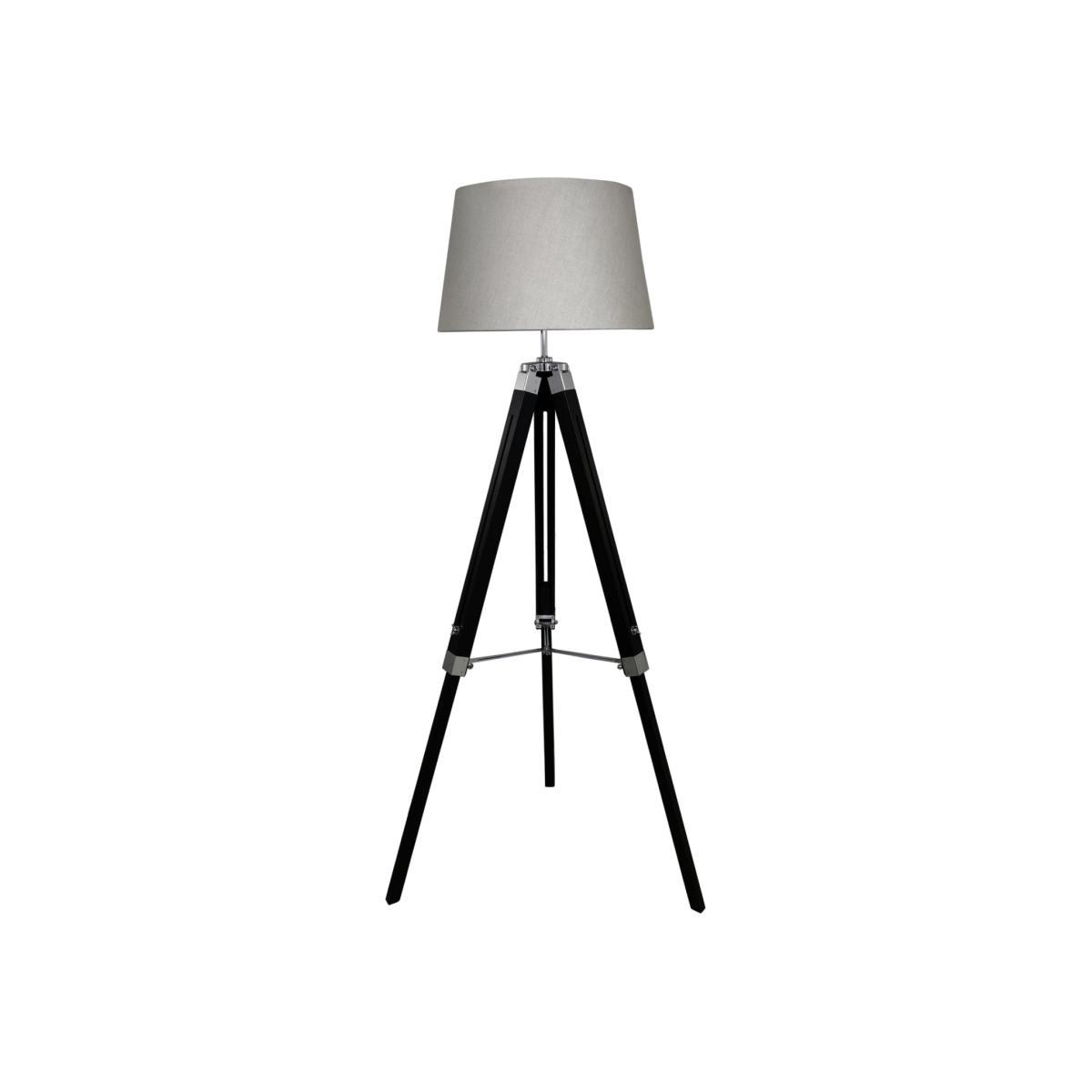 Black Hollywood Wooden Tripod Floor Lamp with 17 inch Charcoal Linen Shade.