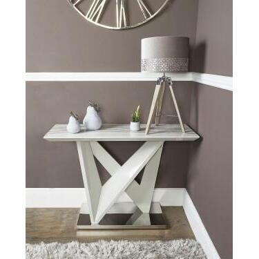 Deco Home Blanche Marble Effect Console Table With A Chrome Foundation