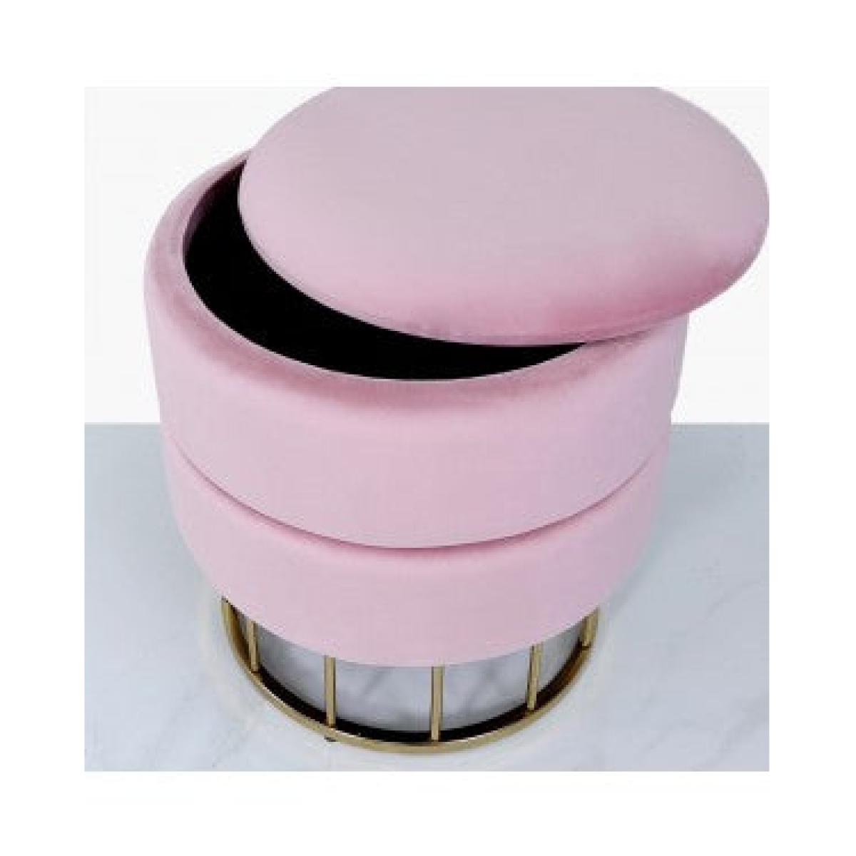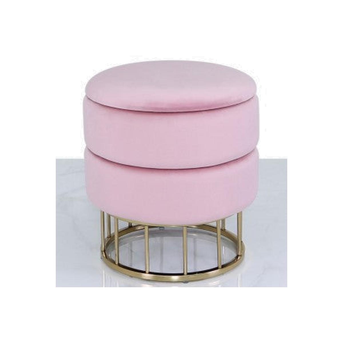 Deco Home Blush Pink Velvet And Gold Metal Round Storage Ottoman Stool / Gold