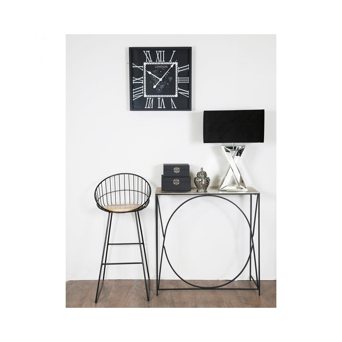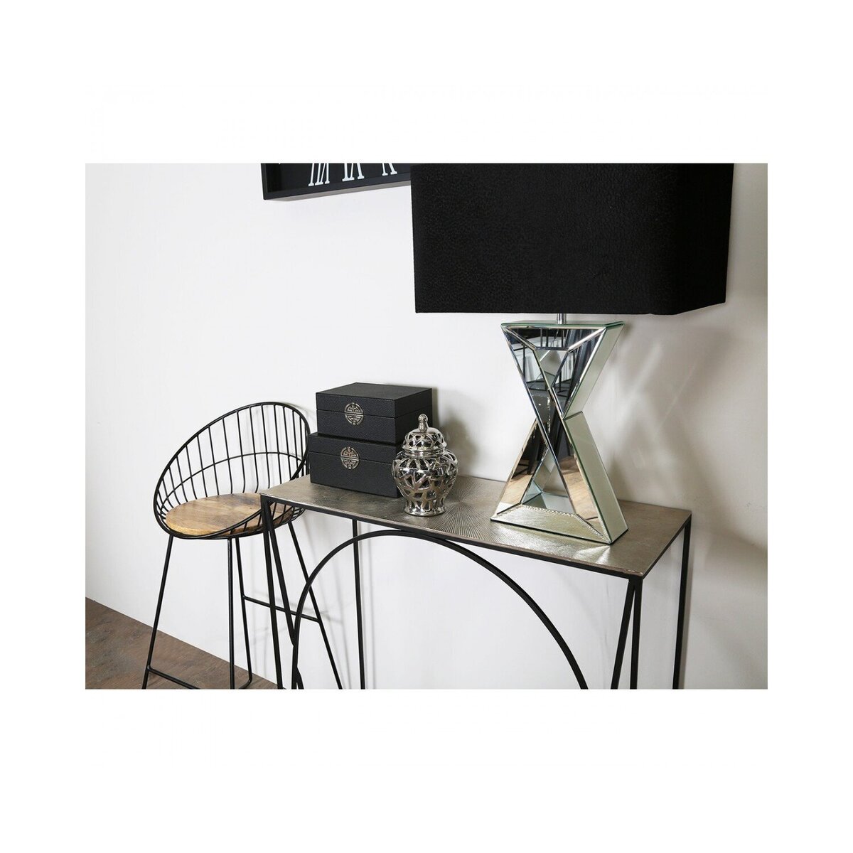 I love this console table for its sleek, contemporary look and versatile colour combo. The black frame with the nickel top lends itself well to modern and industrial interiors, but it can also add a striking touch to more eclectic or minimalist spaces. It works beautifully in entryways for holding keys and mail, or behind a sofa as a display surface for artwork or decorative objects. Practical styling tips include layering with a table lamp, tray, or vase to create visual interest, while keeping the surface clutter-free for a clean, polished aesthetic. Its open structure also makes it adaptable to different room sizes, allowing it to serve as a statement piece without overwhelming the space.