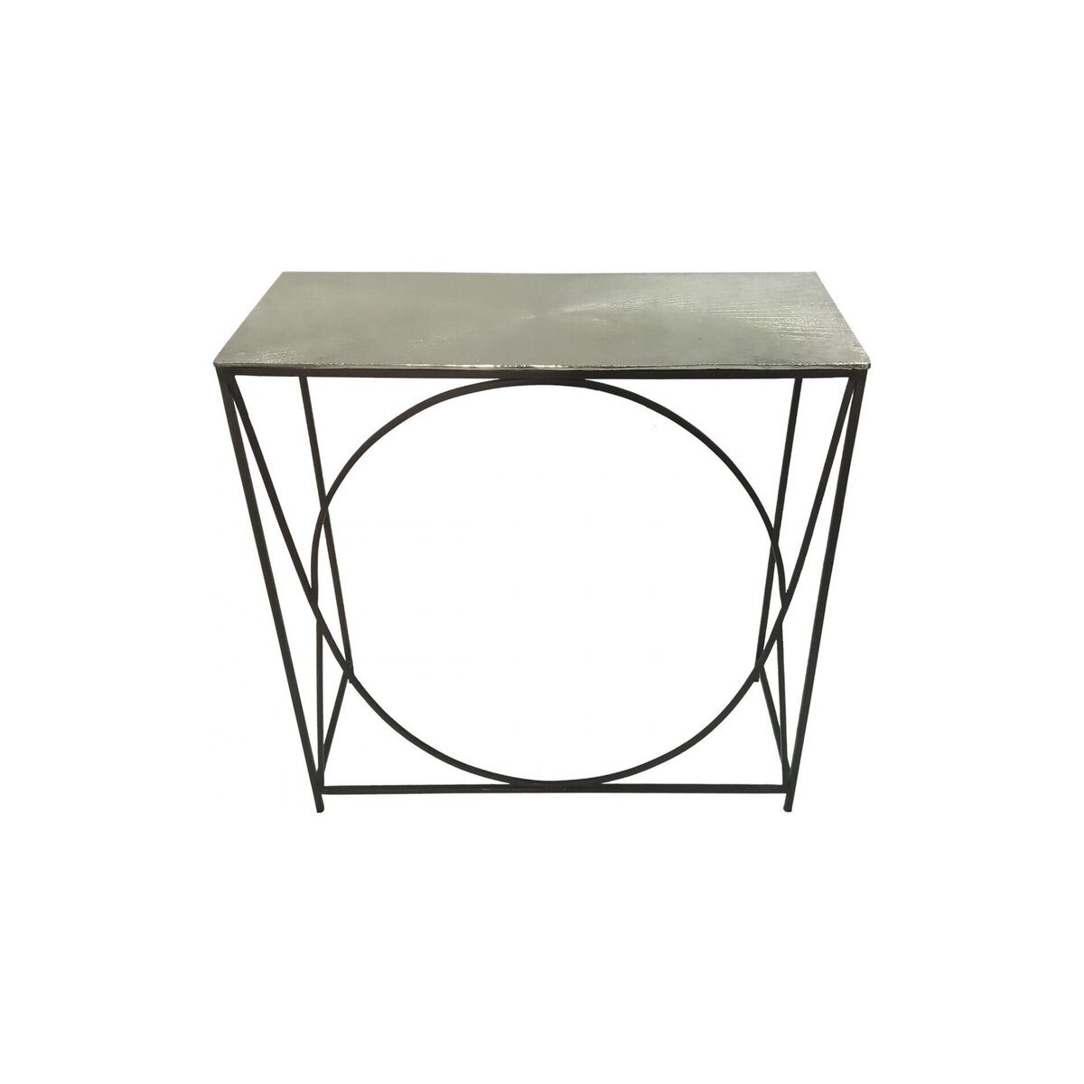 Value Ekanshi console table featuring a black metal frame with a nickel table top.