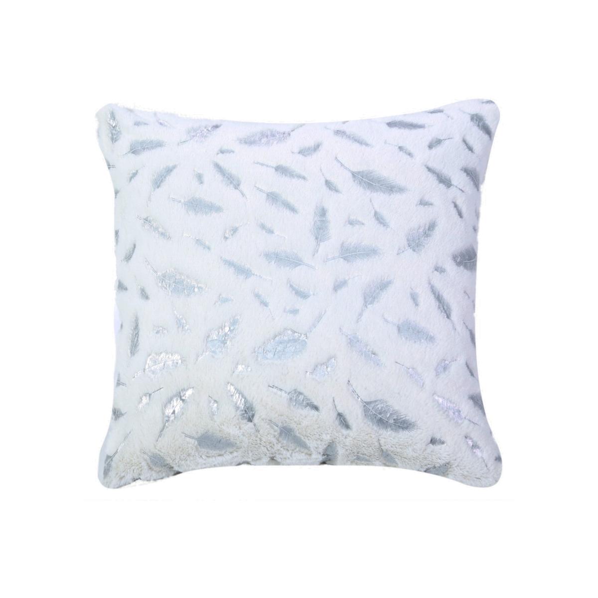 Deco Home Faux Fur White And Silver Feather Cushion / Silver