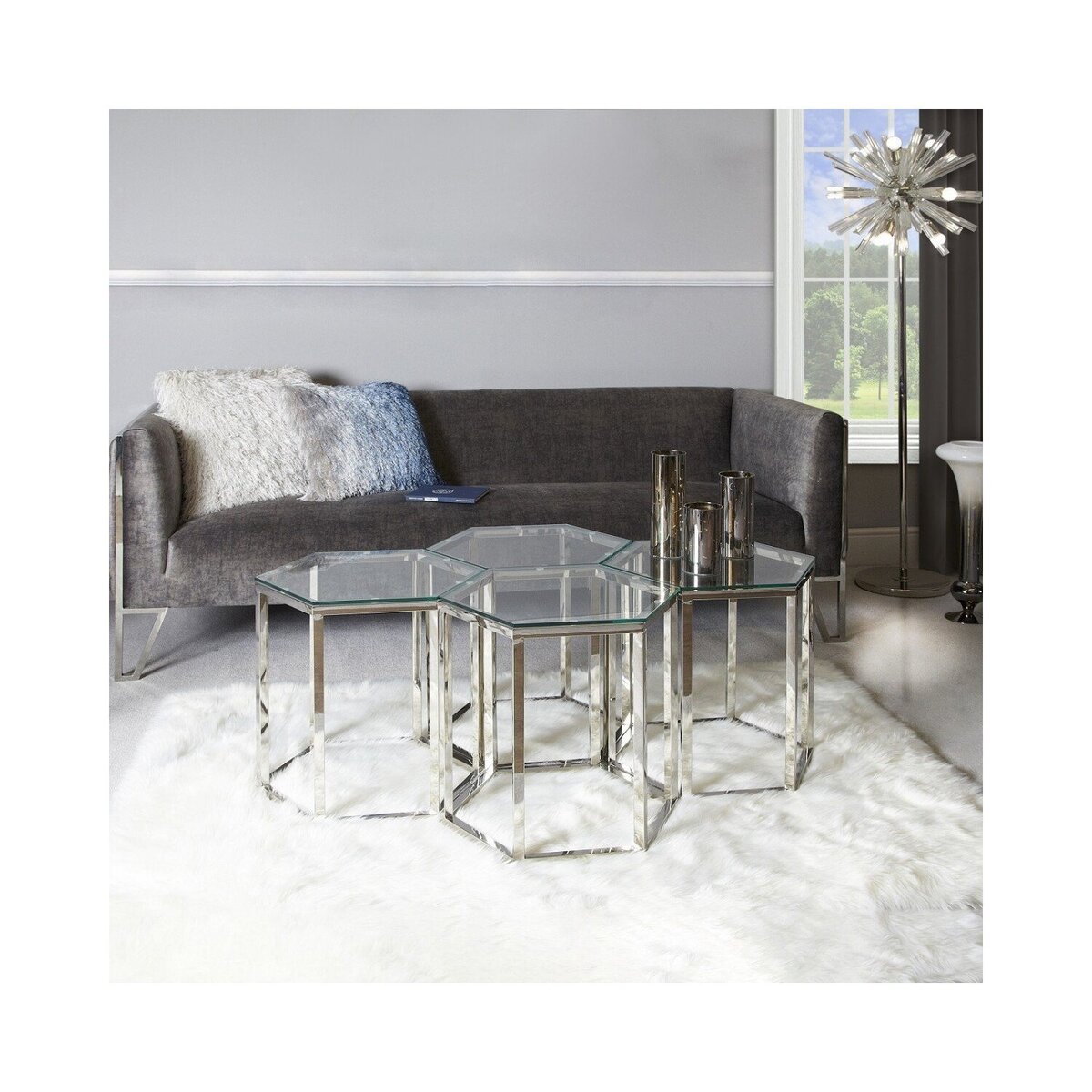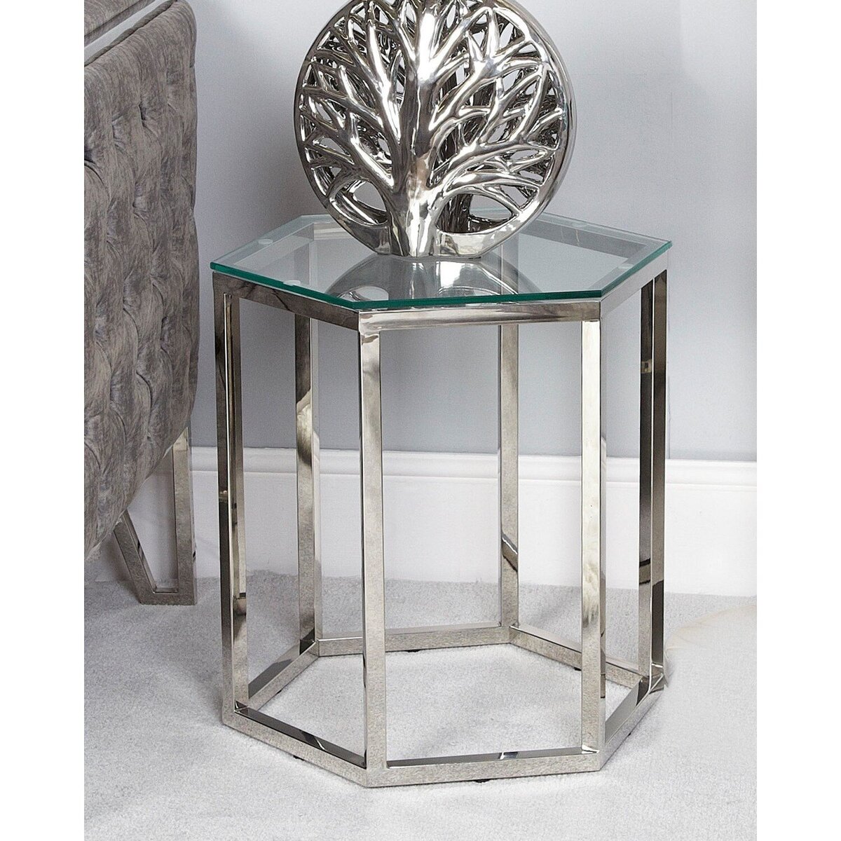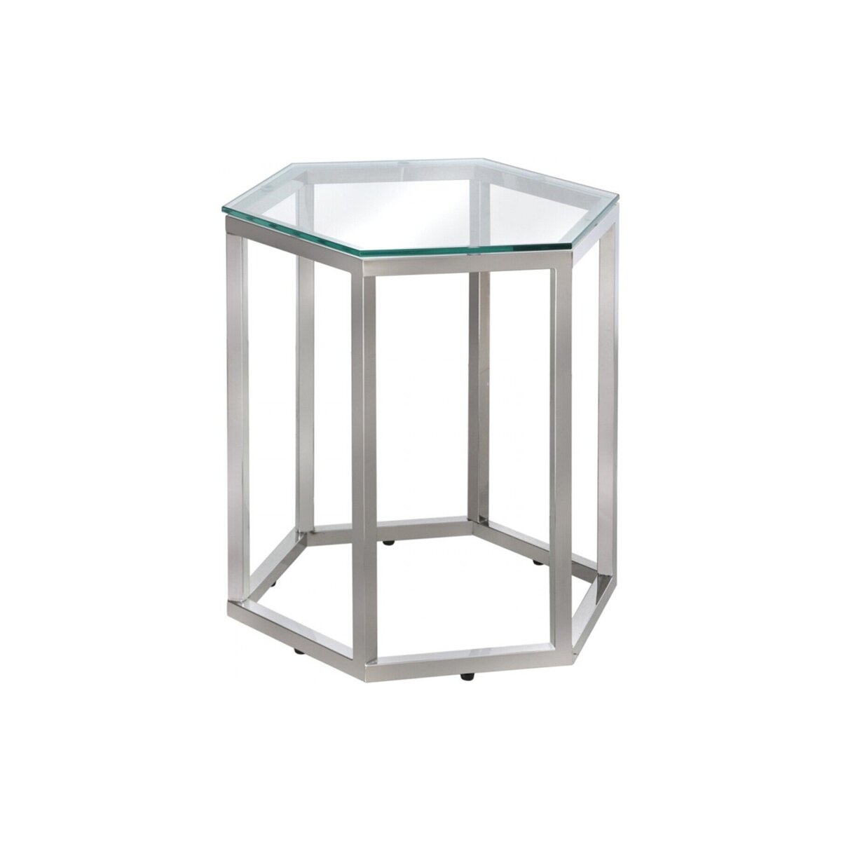 Simple yet effective, the hexagon stainless steel end table will look effortlessly stylish in any living room or bedroom. A sturdy stainless steel base holds a toughened glass table top, perfect for a photo frame, telephone or vase. Or how about ordering a cluster of tables and constructing a clever honeycomb mid-room feature for the lounge which could then be split up to give guests an individual drinks side table when entertaining or for parties. This versatile table with tempered glass will withstand daily use and is also available with a gold metal coloured base frame.