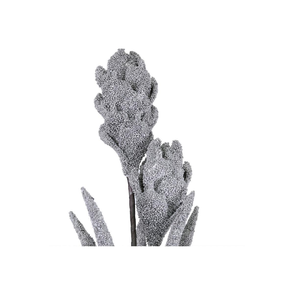 The glittery grey foam protea is a great choice for adding a touch of modern glamour to various interior styles. I love it because it offers a striking focal point without the maintenance of fresh flowers, making it perfect for busy or low-light spaces. It works particularly well in contemporary or minimalist settings, where its subtle shimmer can add visual interest without overwhelming the decor. For styling tips, try placing it in a sleek, monochrome vase on a coffee table or shelf, or group it with other metallic accents for a coordinated look. Its neutral tones and glitter finish mean it can easily be incorporated into both cool-toned interiors and more glamorous schemes, providing a versatile, long-lasting embellishment.