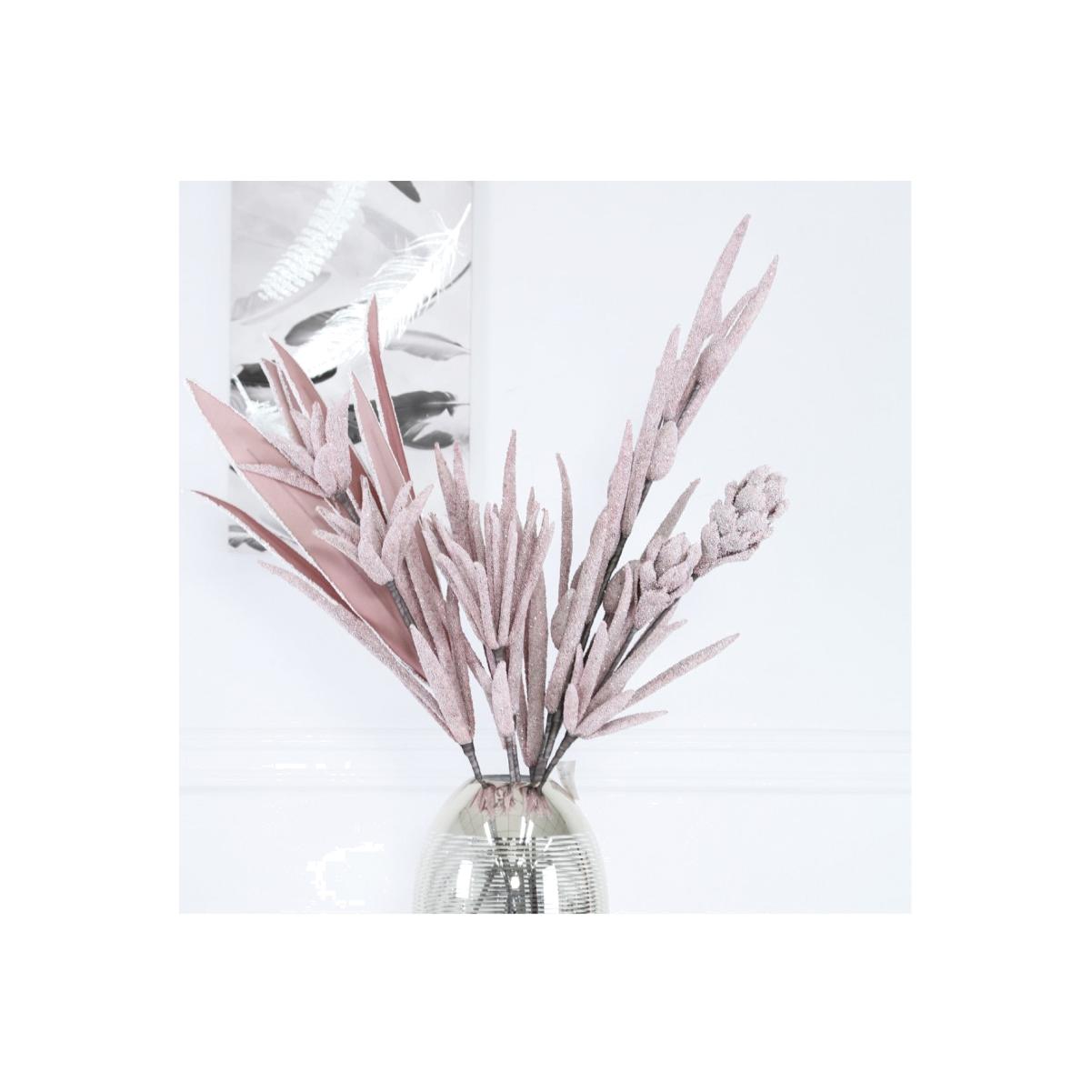 I love the pink glittery spiky flower for adding a touch of glamour and fun to contemporary or eclectic interiors. Its vibrant colour and sparkle make it an eye-catching focal point, especially in minimalist spaces where it can bring a pop of colour without overwhelming. It works particularly well styled in clear or metallic vases on side tables, shelf units, or as part of a centrepiece. To keep it looking fresh, mix with other faux florals for contrast or group with neutral-toned accessories to let its colour shine. Practical styling tips include placing it in high-traffic areas for visual impact or combining with softer textures to balance its bold, spiky silhouette.