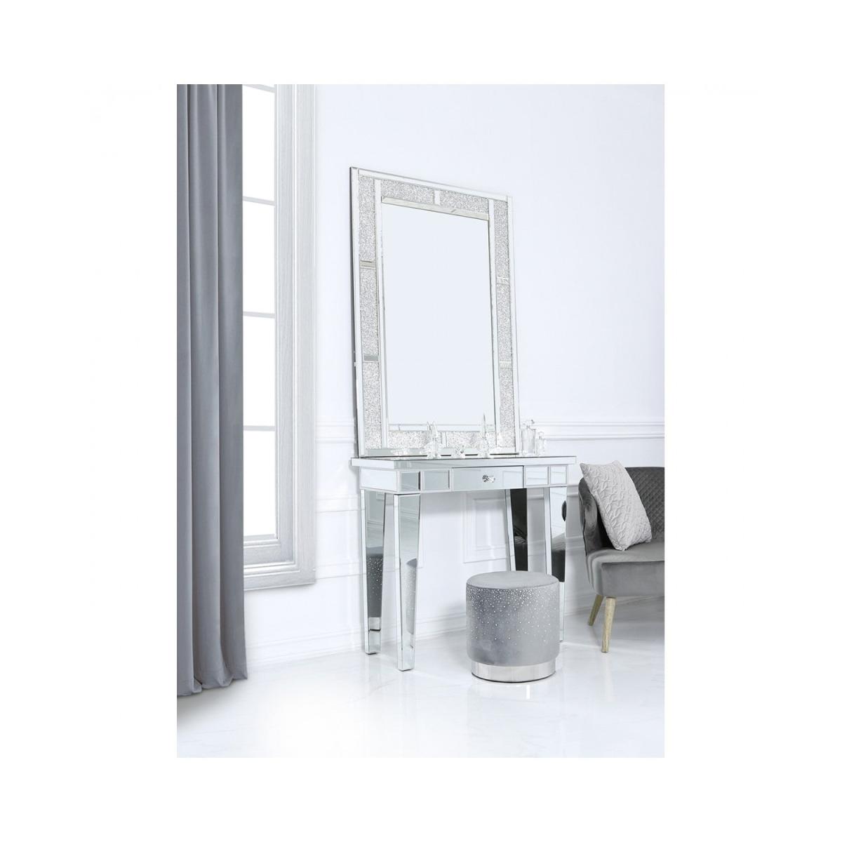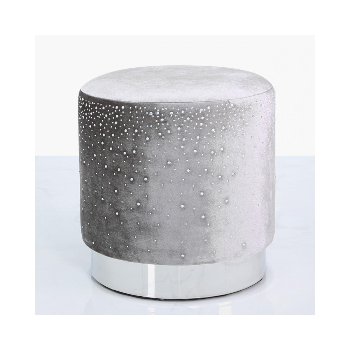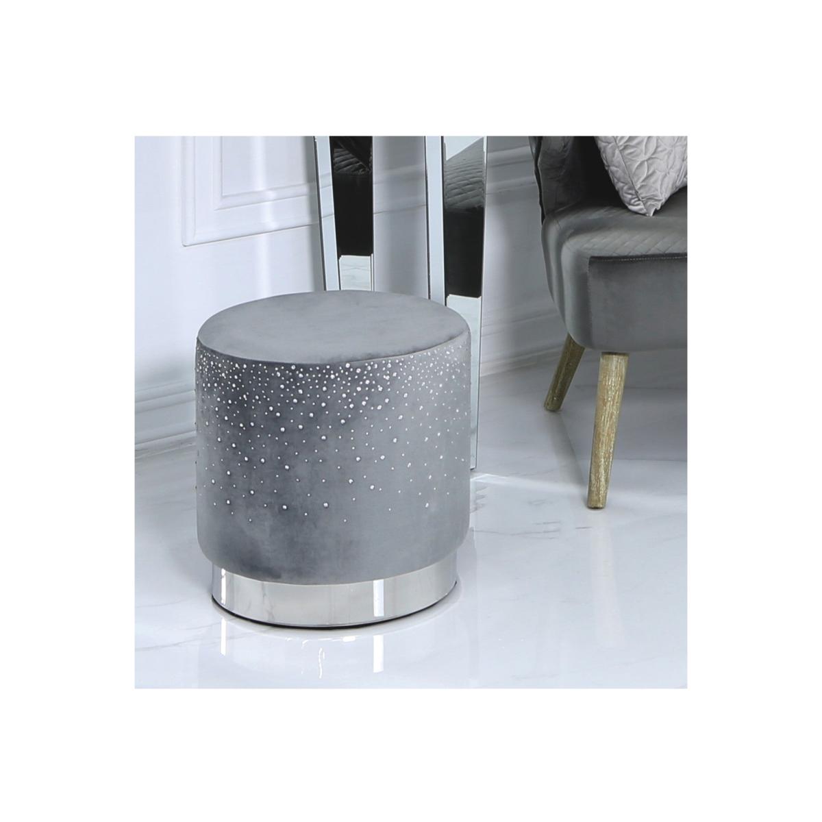 Deco Home Grey Round Stool With Velvet Fabric Adorned With Sparkling Diamantes
