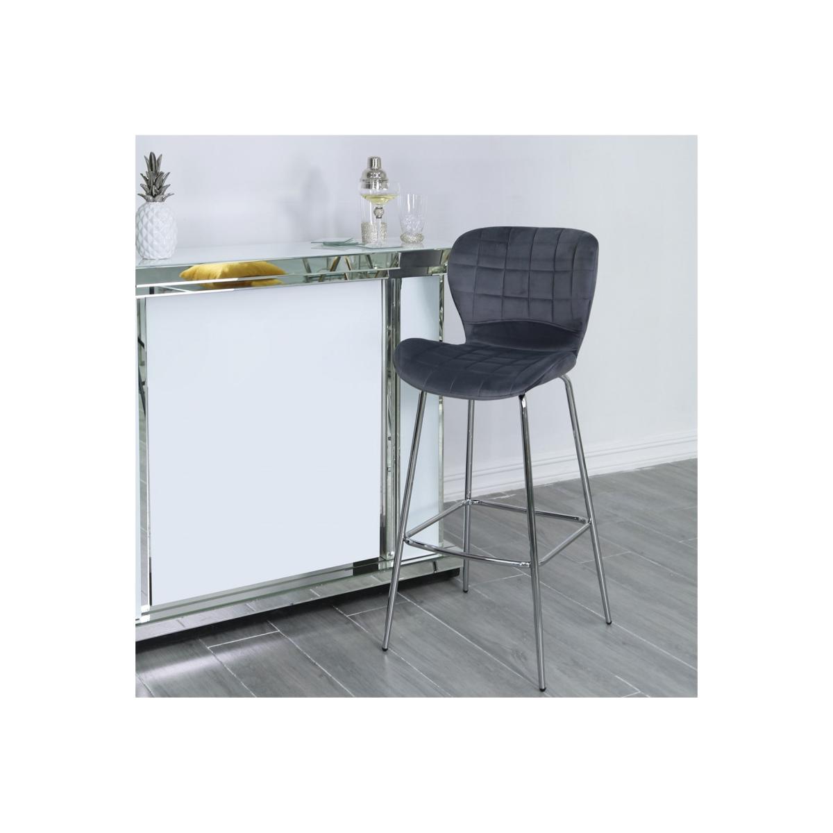 Deco Home Grey Velvet And Chrome Curve Bar Kitchen Stool